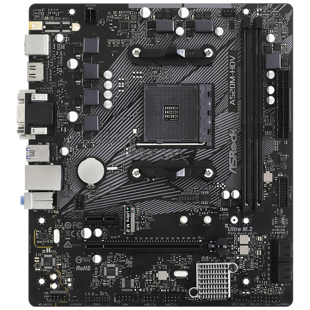 ASROCK A520M-HDV pouzdana je, dobro izvedena matična ploča Micro-ATX koja nudi savršenu ravnotežu naprednih tehnologija i čvrstog hardvera. Pogodno za AMD Ryzen procesore i kompatibilan je s AMD A520 čipsetom. Ima maksimalni kapacitet memorije od 64 GB DDR4-AM4 RAM-a koji omogućava korisnicima da pokreću velike projekte ili igraju igre visokih performansi.