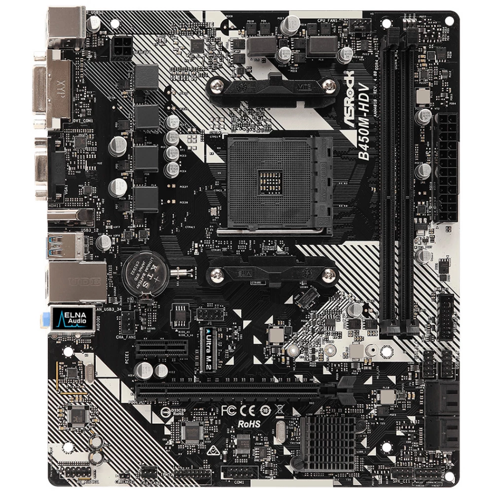 Matična ploča ASROCK B450M-HDV R4.0 zasnovana je na AMD B450 čipsetu, koja je dizajnirana za ekonomično, ali pouzdane korisnike performansi. Ova mikro ATX matična ploča može biti idealan izbor za izgradnju malih računara koji mogu podnijeti i dnevne zadatke i manje zahtjevne igračke. Matična ploča podržava širok spektar AMD Ryzen procesora, pružajući fleksibilnu osnovu za korisnike da prilagode svoj sistem.