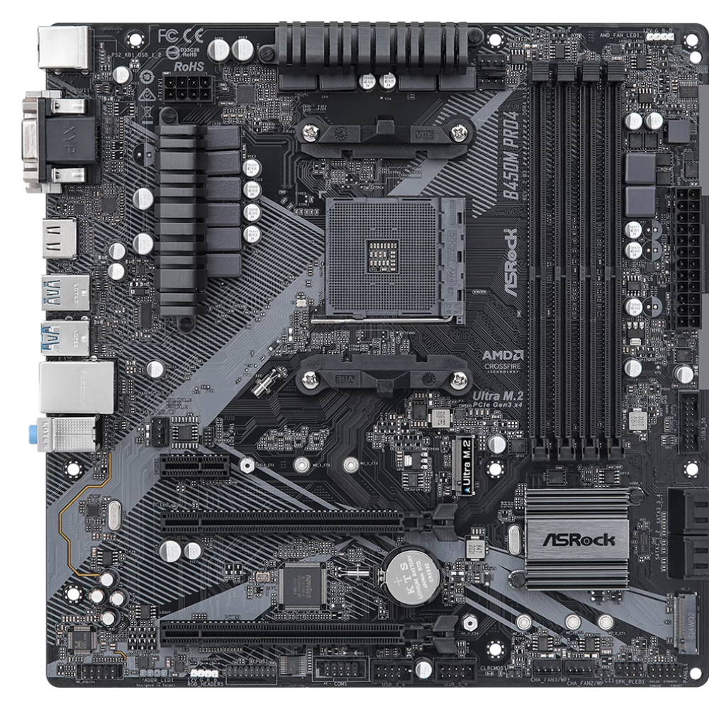 Matična ploča ASROCK B450M PRO4 R2.0 temelji se na AMD B450 čipsetu, koji pruža stabilnu podršku za popularne Ryzen procesore. Ova micro ATX matična ploča je idealan izbor za one koji žele sastaviti troškove -efficiranog, ali pouzdanog i svestranog sistema, bilo da je to kod kuće ili uredske upotrebe, ili čak jednostavno igrati. Papir podržava AMD Ryzen 2000, 3000, 4000 g, 5000 g, 5000 g, pružajući korisnicima fleksibilnost u prilagođavanju i budućim razvoju svog sistema.
