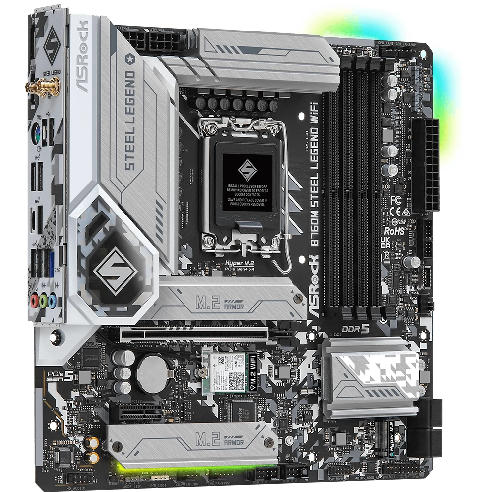 ASROCK B760M čelična legenda WiFi matična ploča zasniva se na Intel B760 čipsetu koji pruža podršku za CORE ™ procesore Intel® 14, 13 i 12. generacije. Ova matična ploča Micro ATX nudi visoke performanse i izvanrednu funkcionalnost na sredini -Range tržišta, što može biti idealan izbor za igrače i performanse – Orijentirane korisnike. Bilo da se radi o igri, radu ili multimedijskim aplikacijama, ova matična ploča nudi izuzetnu brzinu, izdržljivost i fleksibilnost korisniku.