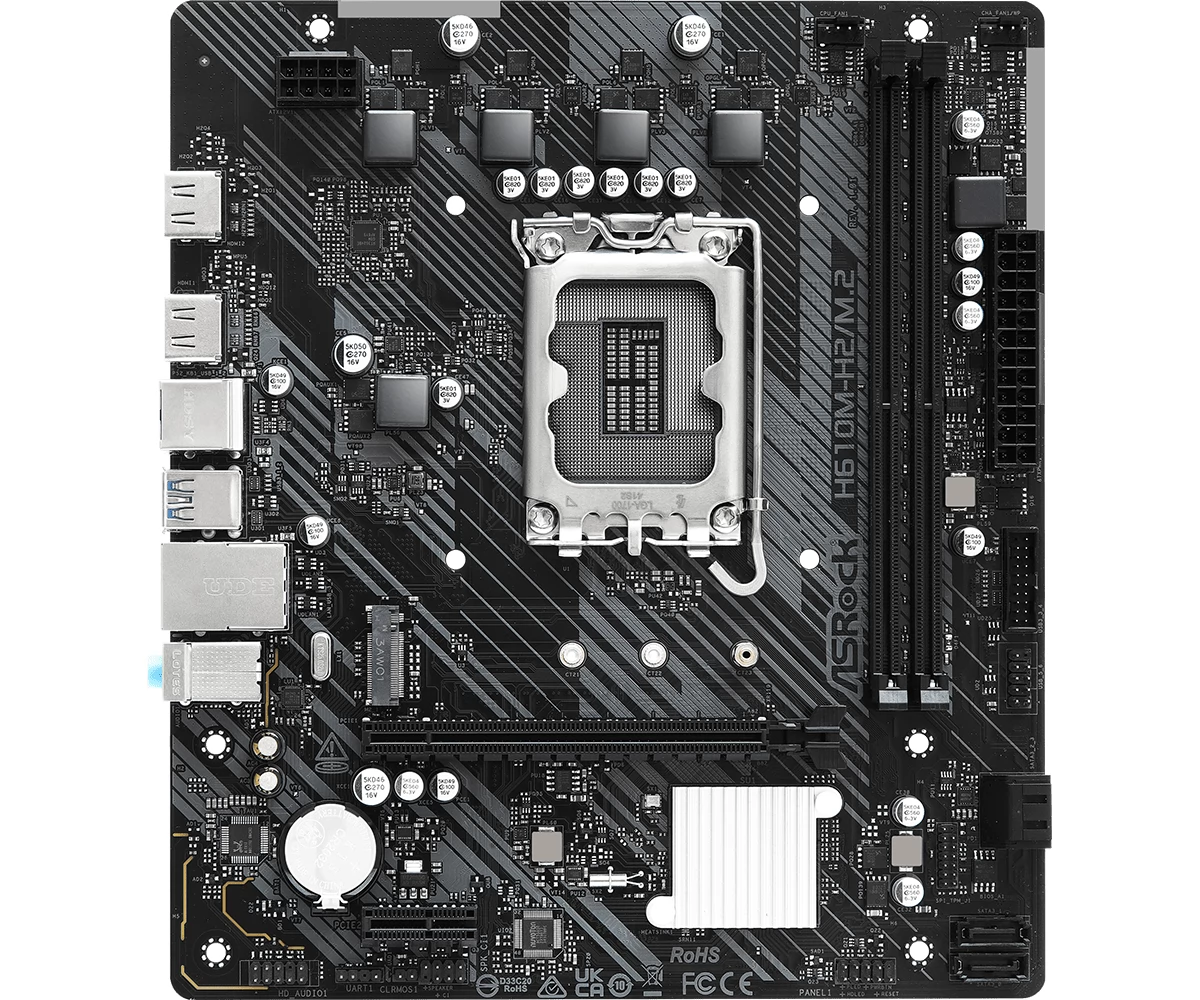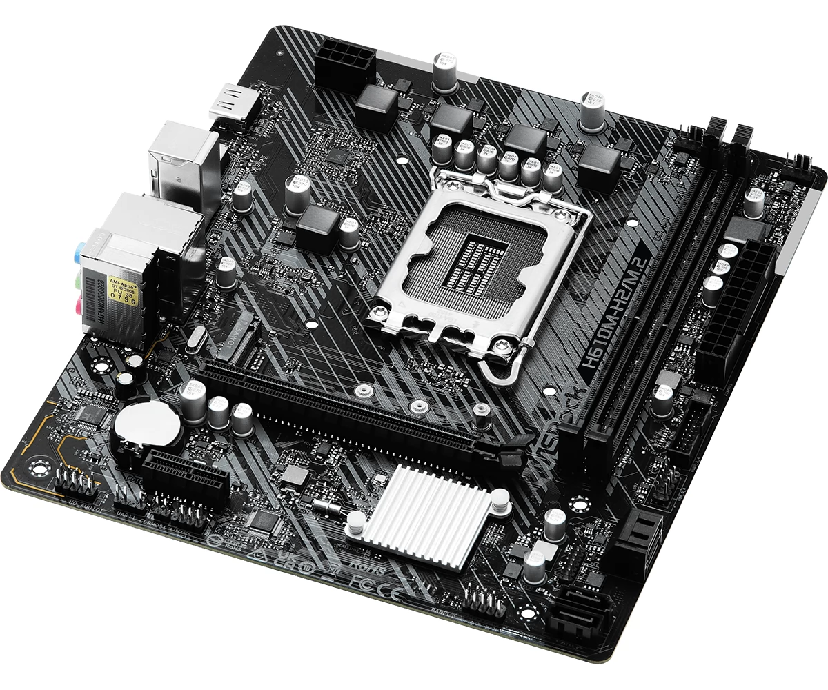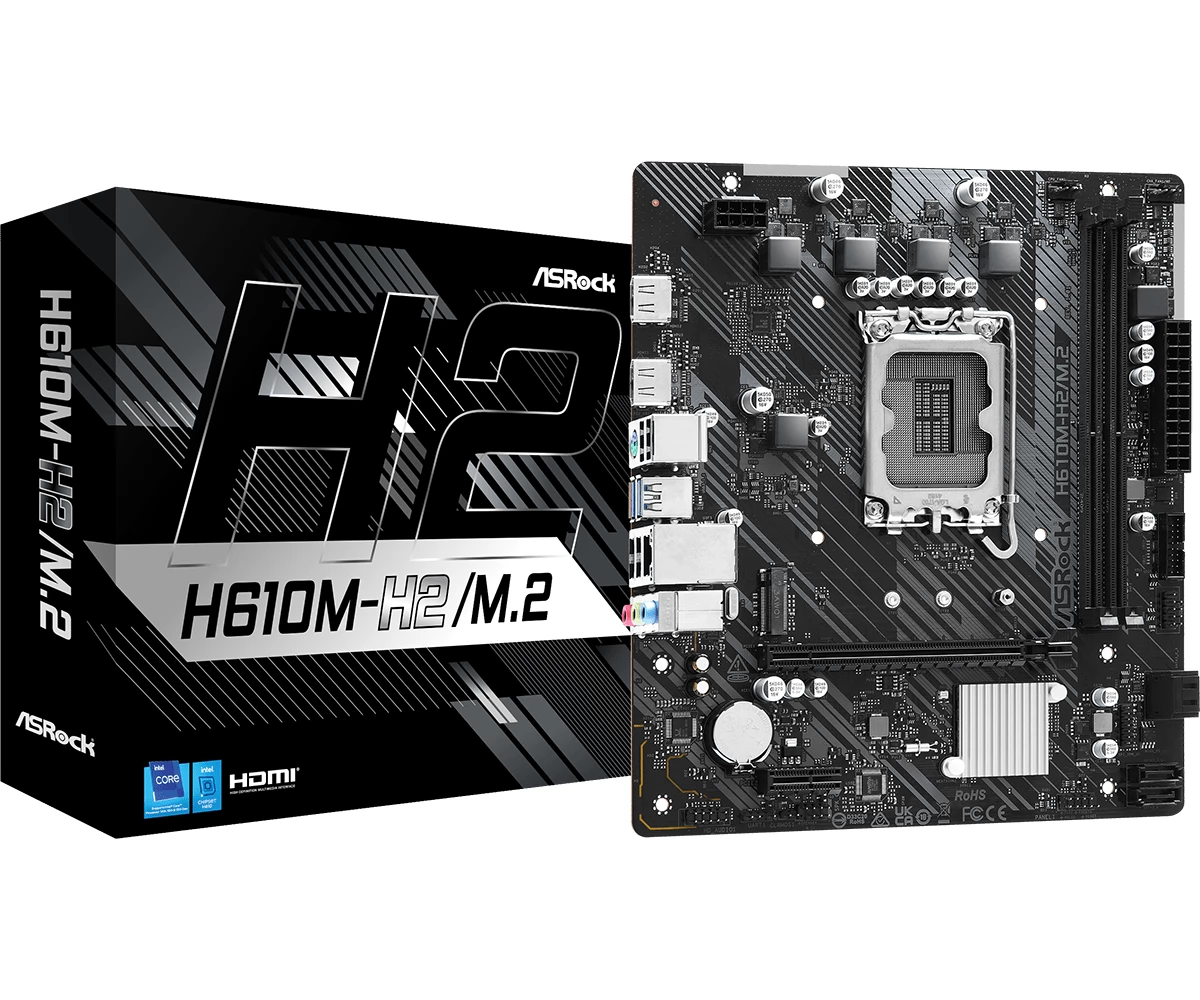 ASROCK H610M-H2 / M2 matična ploča s utičnicom LGA-1700, Intel H610 čipset, integrirana video kartica procesora, 2 DDR4 memorijske utore (max 64GB). 6 USB 2.0 priključaka, 4 USB 3.0 priključka.