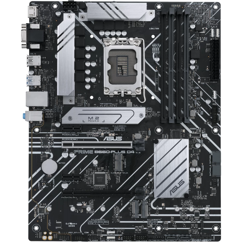 Matična ploča ASUS Prime B660-Plus D4 temelji se na Intel B660 čipsetu, koji pruža podršku za Intel® 13 i 12 generacije Core ™ procesora. Ova matična ploča ATX formata dobro je prilagođena i za kućnu i profesionalnu upotrebu, gdje su pouzdanost i visoki učinak prioritet. ASUS PRIME serija poznata je po kombinaciji konfiguracije prilagođene korisničkom i stabilnom snagom, tako da je model B660-Plus D4 savršen za maksimalnu upotrebu najnovijih Intelova procesora.