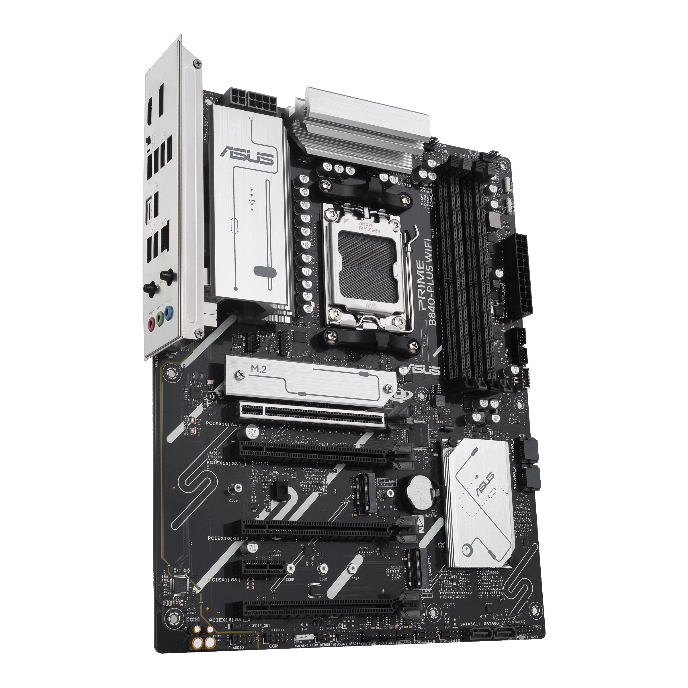 ASUS Prime B840-Plus WiFi matična ploča sa socket-am5 lot, AMD B840 čipovima, integriranom video karticom procesora, 4 DDR5 / Cudimm memorijski utor (max 192GB). 8 USB 2.0 priključaka, 5 USB 3.0 priključaka, 2 USB 3.1 portova.