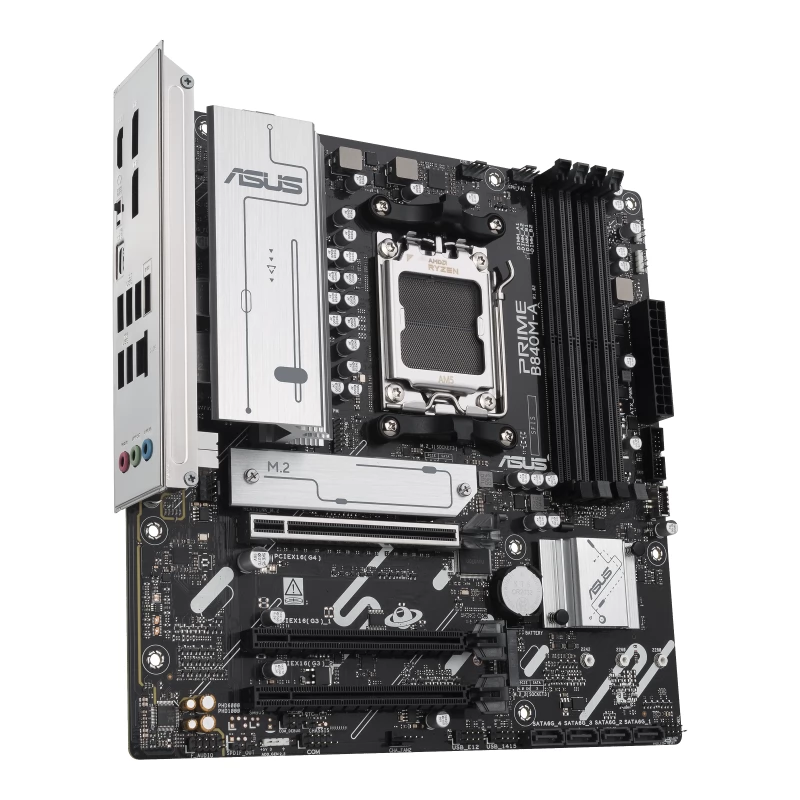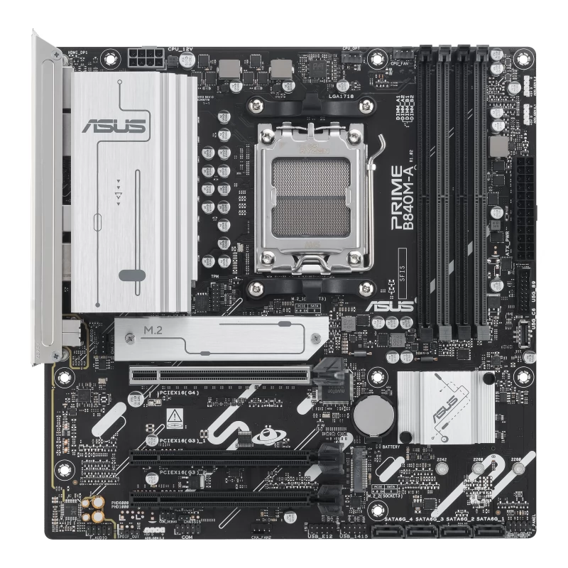 ASUS Prime B840M-A-CSM simpatija sa Socket-AM5 lot, AMD B840 čipovima, integriranom video karticom procesora, 4 DDR5 / Cudimm memorijskog utora (max 192GB). 8 USB 2.0 priključaka, 4 USB 3.0 priključka, 2 USB 3.1 portova.