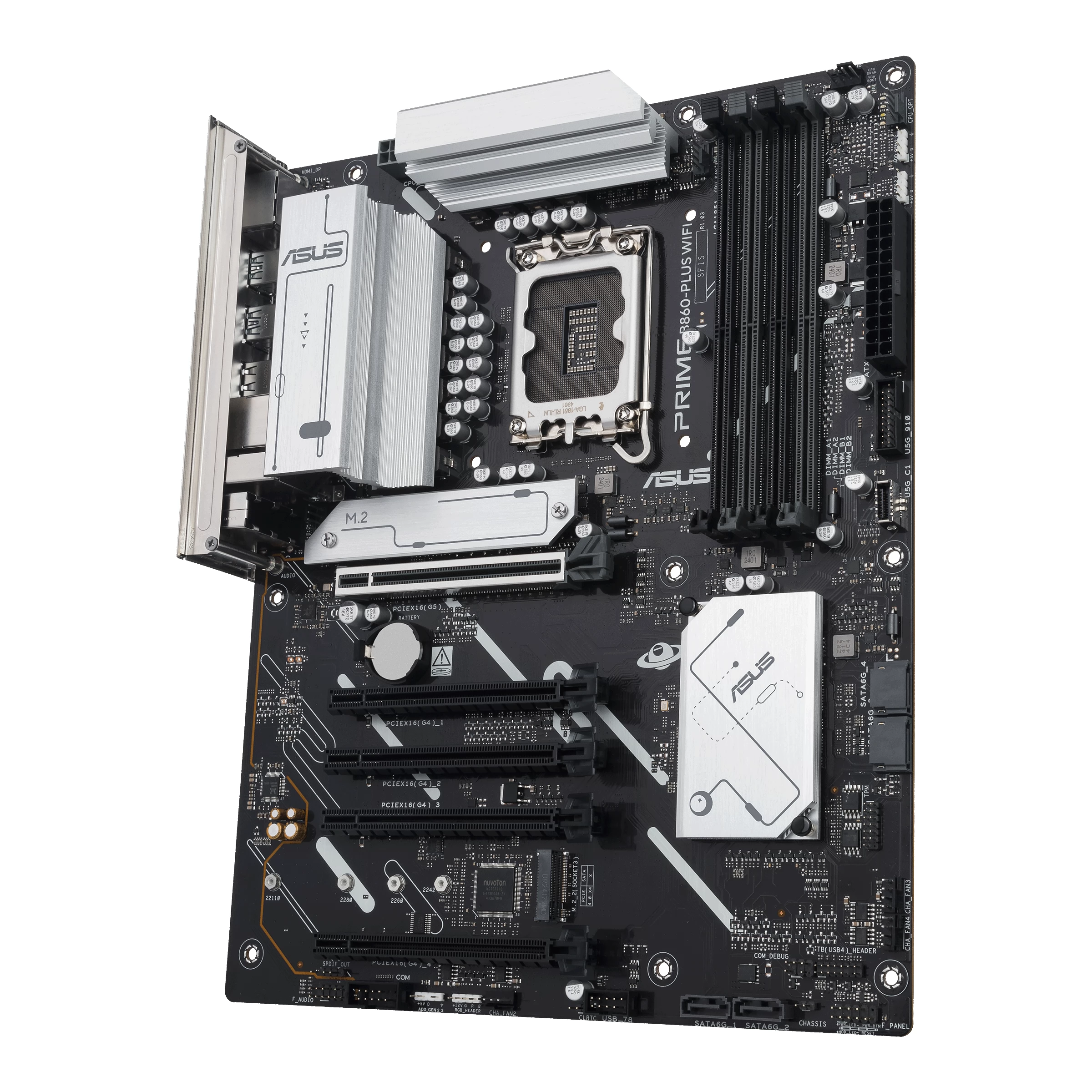 ASUS Prime B860-Plus WiFi matična ploča sa LGA-1851, Intel B860 čips, integrirana video kartica procesora, 4 DDR5 / Cudimm memorijskog utora (max 256GB). 6 USB 2.0 priključaka, 4 USB 3.0 priključka, 3 USB 3.1 portova.