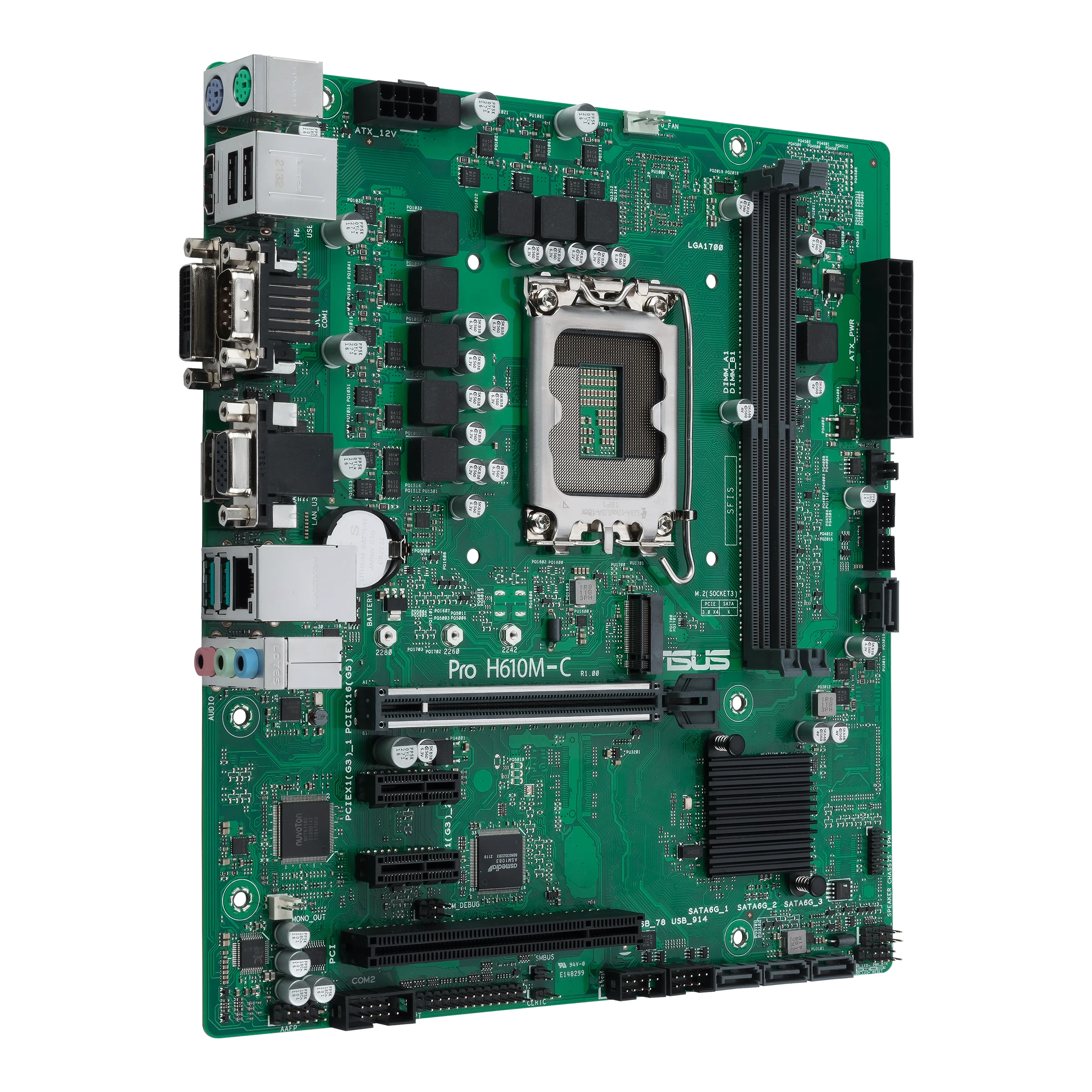Matična ploča ASUS Pro H610M-C-CSM izrađena je sa modernim korporativnim potrebama, tako da se temelji na Intel H610 čipsetu, pruža punu podršku za 12 generacije Intel® Core ™ procesore. To je dio programa ASUS Corporate Stabible Model (CSM) posebno usmjeren na dugoročne potrebe poslovnih korisnika, osiguravajući stabilnu pristupačnost i pouzdanu podršku proizvoda, koji su ključni za nesmetani rad korporativne IT infrastrukture.