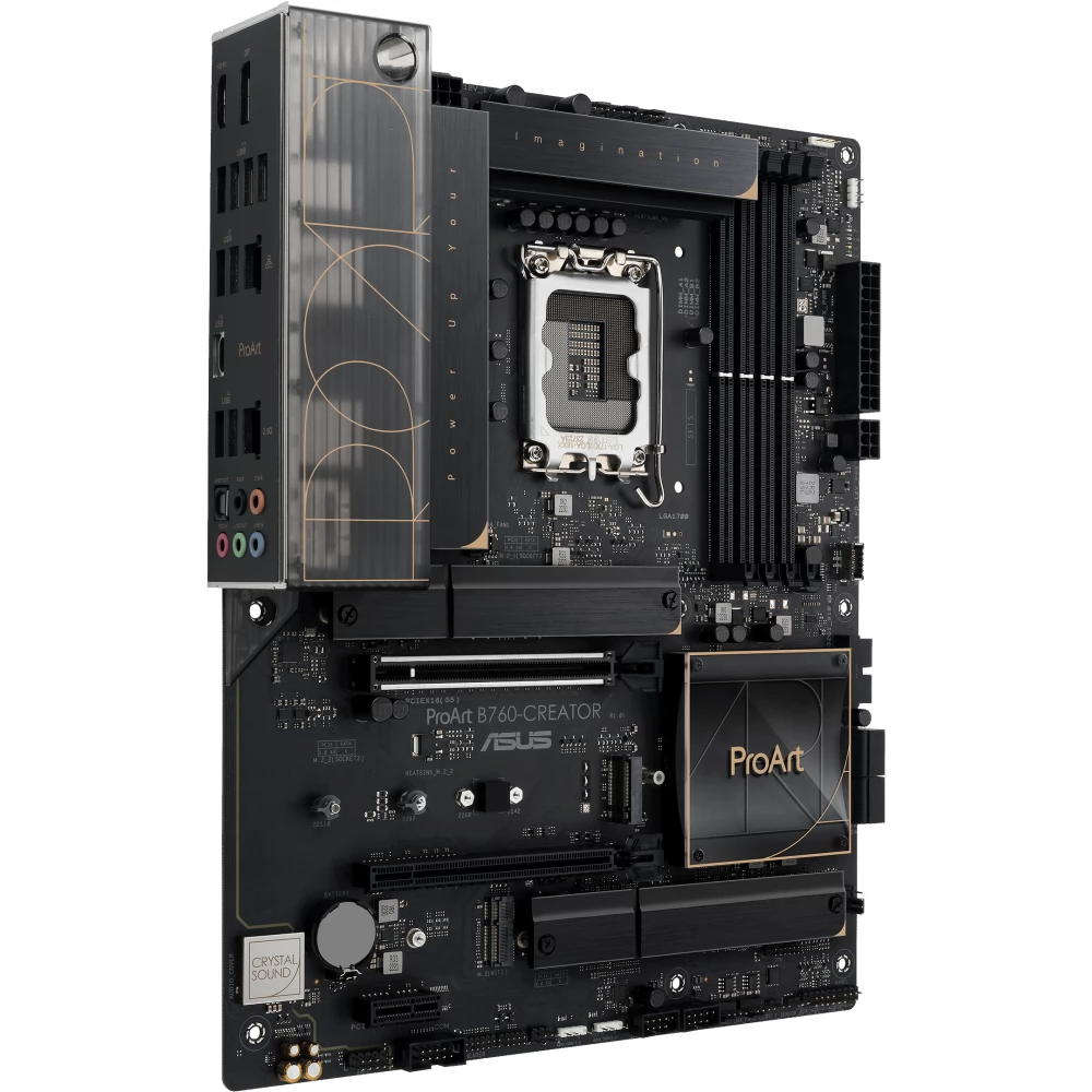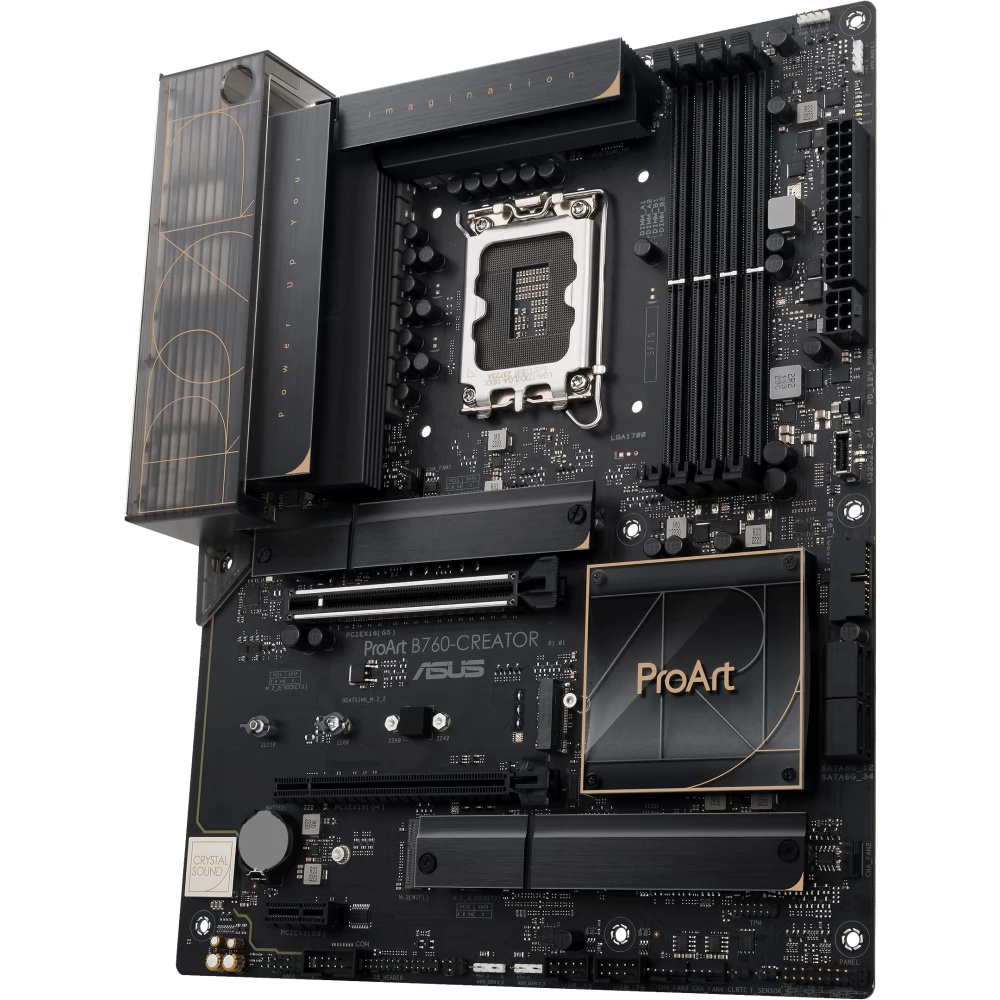 Matična ploča ASUS PROART B760-Creator temelji se na najnovijoj Intel B760 čipsetu dizajniranom posebno za podršku 13. i 12. generaciji Intel® Core ™ procesore. Ova matična ploča može biti savršen izbor za kreativne profesionalne ljude koji zahtijevaju visoke nivoe performansi i pouzdanosti u grafičkom dizajnu, uređivanju videa ili drugim radom na intenzivnom resursima. Proart B760-Creator pruža sigurnu osnovu, omogućavajući korisnicima da iskoriste napredne računarske mogućnosti Intelove najnovije generacije.