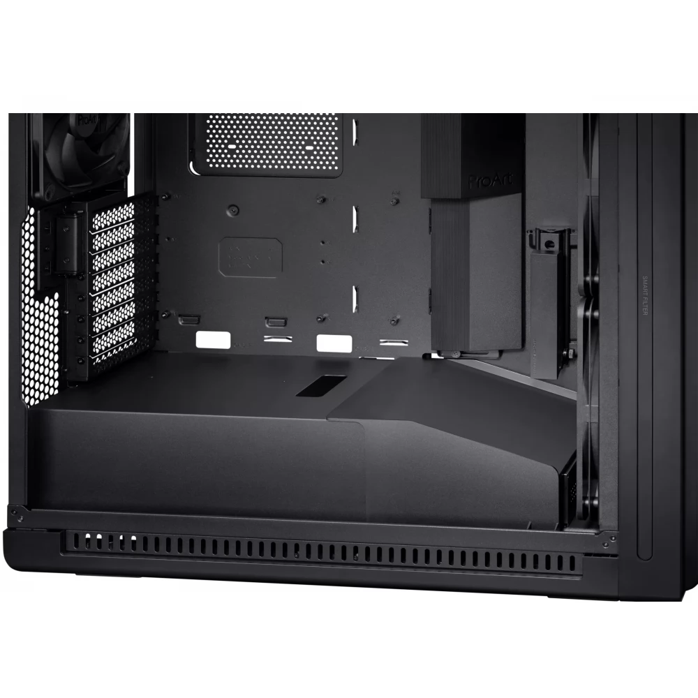 Na prednjoj strani PA602, rešetka s razmacima od 15,5 mm i 45% propusnosti zraka pomaže u osiguravanju najslobodnijeg mogućeg protoka zraka i ventilacije. Izuzetno debeli PWM ventilatori pružaju snažan protok zraka s ugodnom razinom buke, a dvije unaprijed instalirane zračne pregrade usmjeravaju hladan zrak prema grafičkim karticama i usisu hladnjaka CPU-a, poboljšavajući efikasnost hlađenja cijelog sistema.