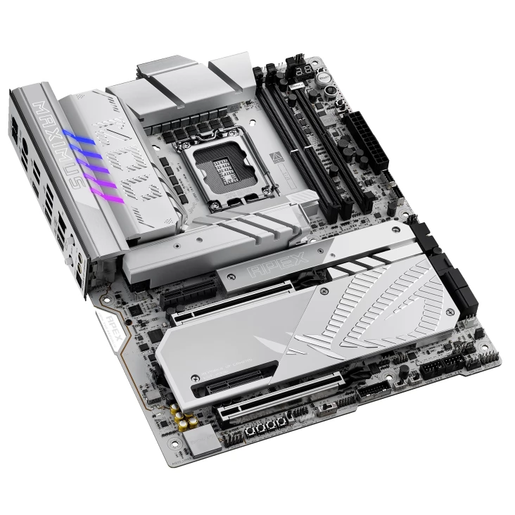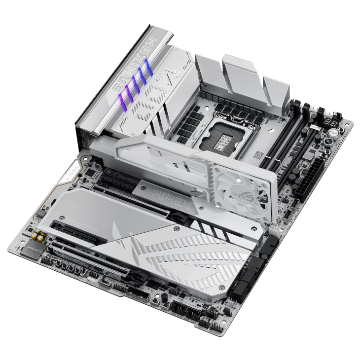 Asus Rog Maximus Z890 Apex matična ploča sa LGA-1851 utor, Intel Z890 čipset, integrirana video kartica procesora, 2 DDR5 memorijskih utora (max 96GB). 4 USB 2.0 priključci, 13 USB 3.0 priključaka, 2 USB 3.1 portova.