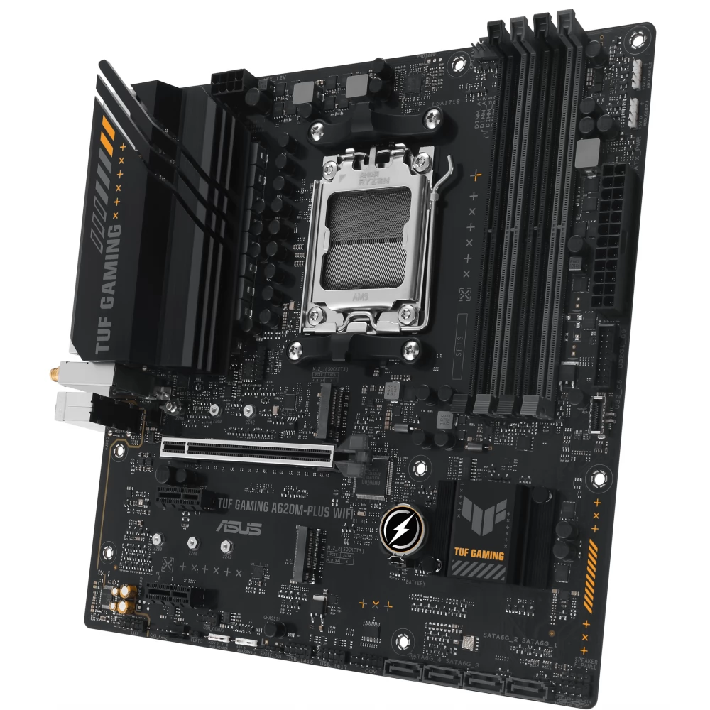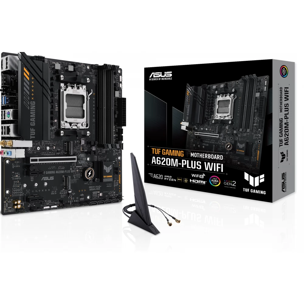 ASUS TUF Gaming A620M-Plus WiFi matična ploča zasniva se na AMD A620 čipsetu, koji je kompatibilan s najnovijim procesorima AMD Ryzen ™ 7000, pružajući korisnicima vrhunske performanse i pouzdanosti zagarantovane značajkama zagarantovane tufe. Uz modernu podršku procesora, matična ploča nudi stabilnu osnovu za igrače i profesionalne korisnike, omogućavajući im da iskoriste AMD-ovu najnoviju tehnologiju.