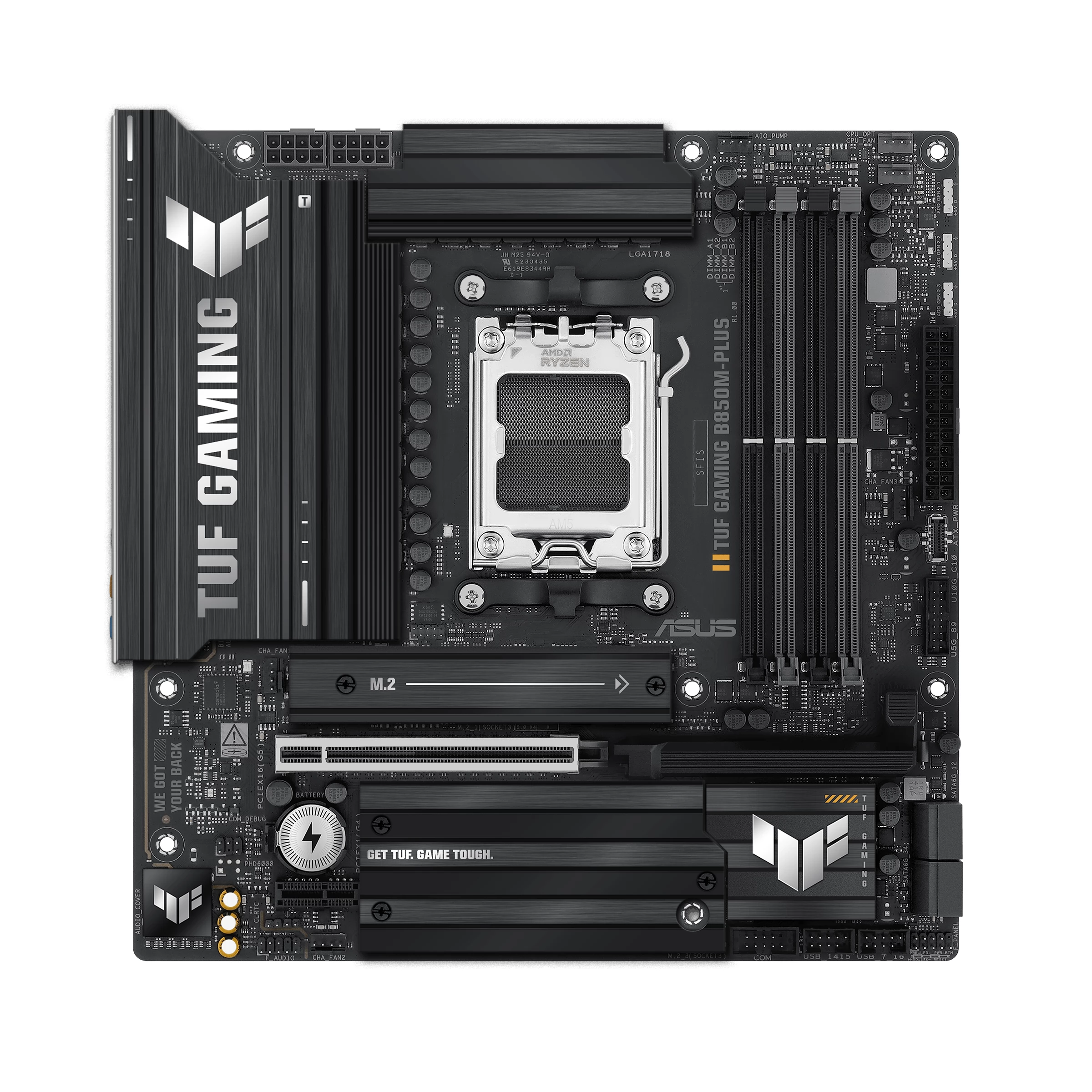 Asus Tuf Gaming B850M-Plus matična ploča sa utičnicama sa utičnicama, AMD B850 čipset, integrirana video kartica procesora, 4 DDR5 / CUDIMM memorijske sekcije (max 192GB). 8 USB 2.0 priključaka, 6 USB 3.0 priključaka, 5 USB 3.1 portova.