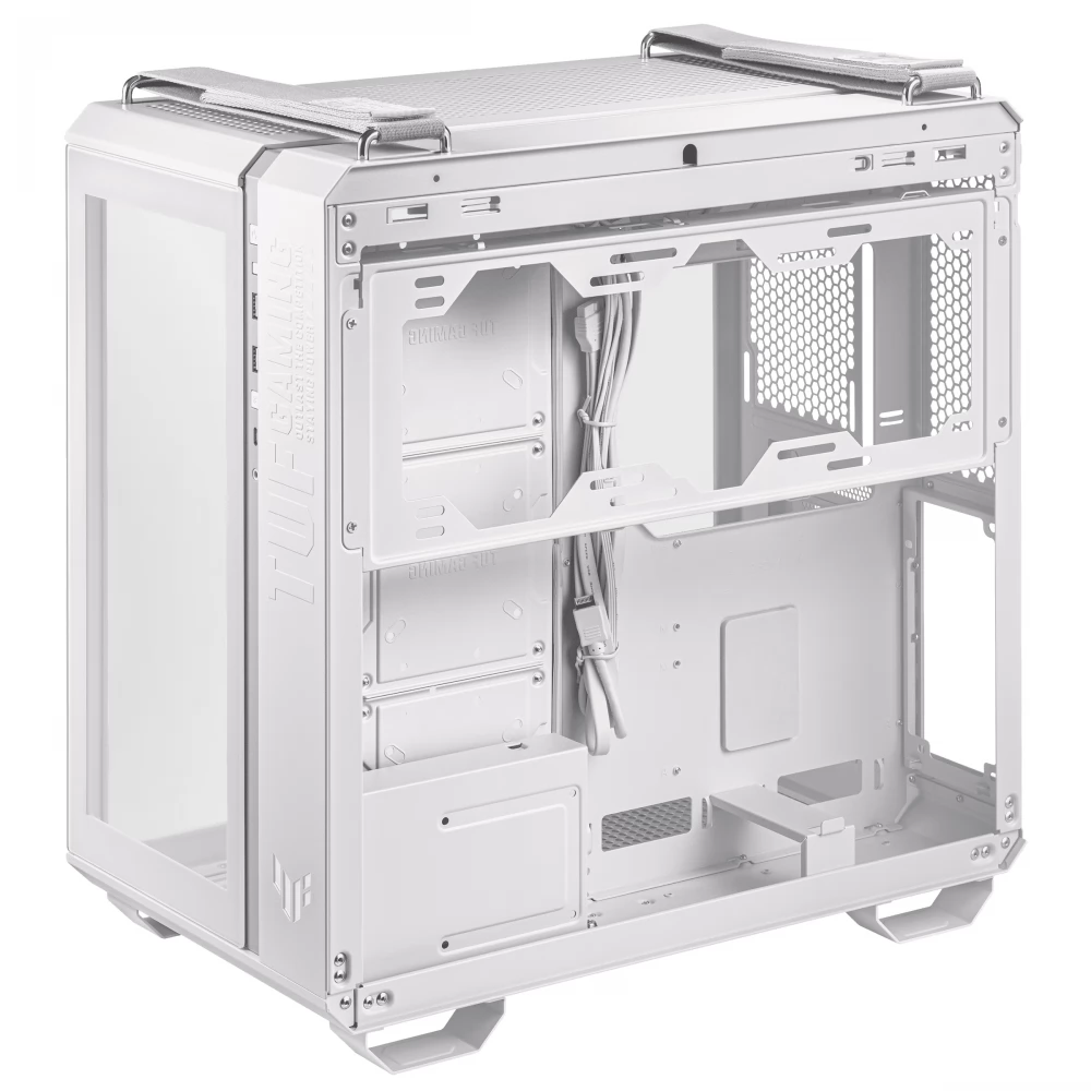 Ništa bolje ne ilustruje optimalne mogućnosti TUF Gaming GT502 od bočnih ploča bez alata, koje se mogu ukloniti pritiskom na dugme skriveno na stražnjoj strani kućišta.