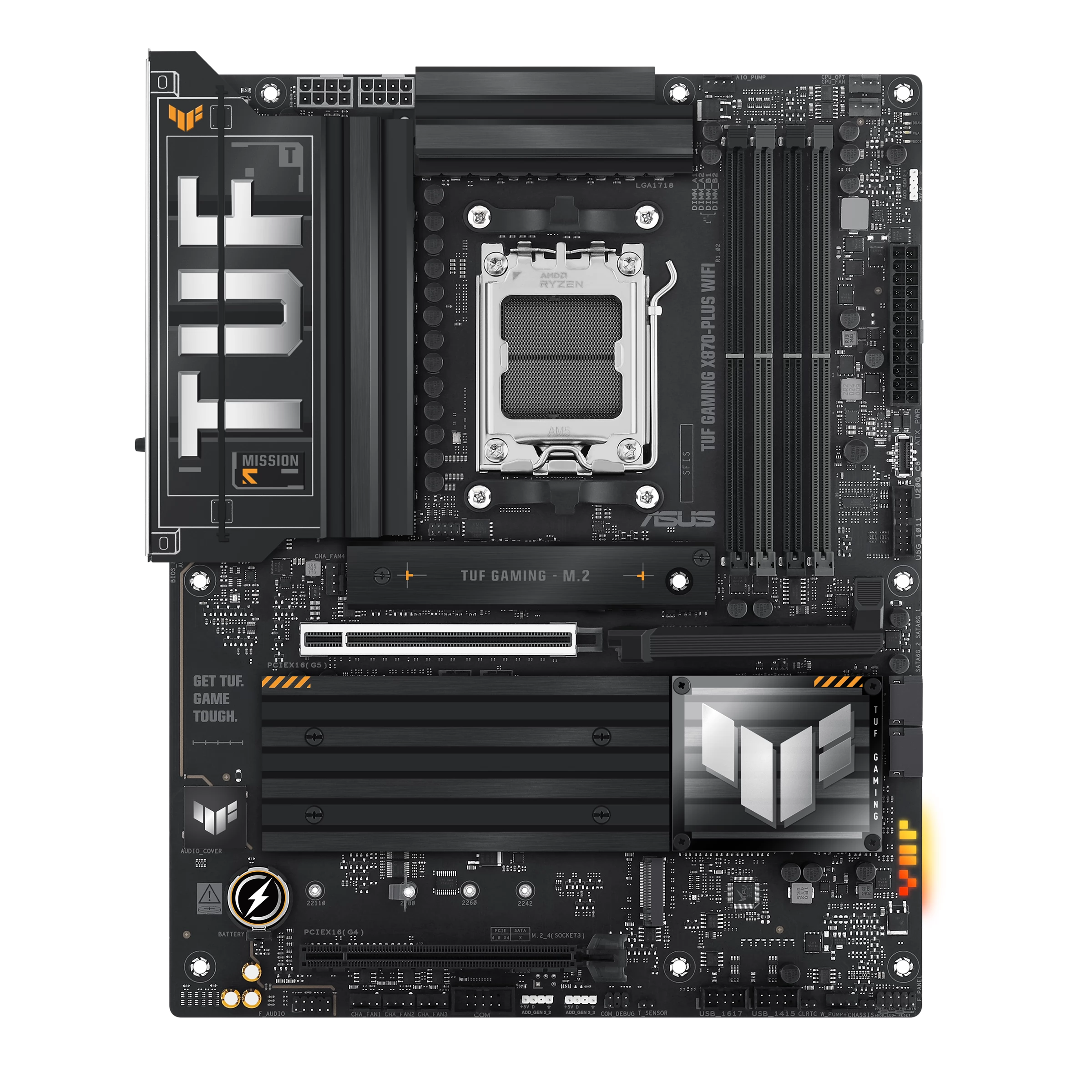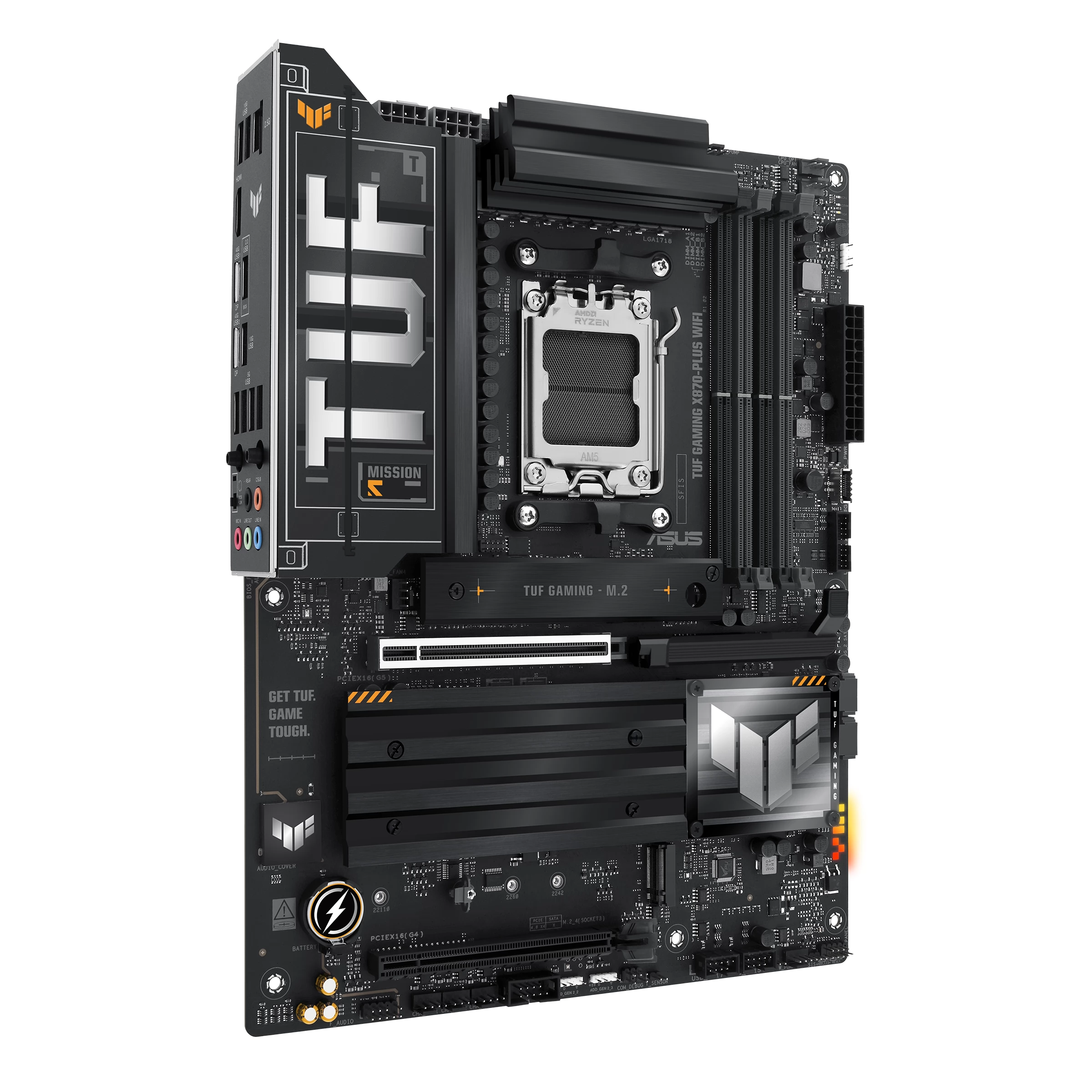 Asus Tuf Gaming X870-Plus WiFi matična ploča sa Socket-AM5 utičnica, AMD X870 čips, integrirana video kartica procesora, 4 DDR5 / Cudimm memorijskog utora (max 256GB). 5 USB 2.0 priključaka, 6 USB 3.0 priključaka, 3 USB 3.1 portova.