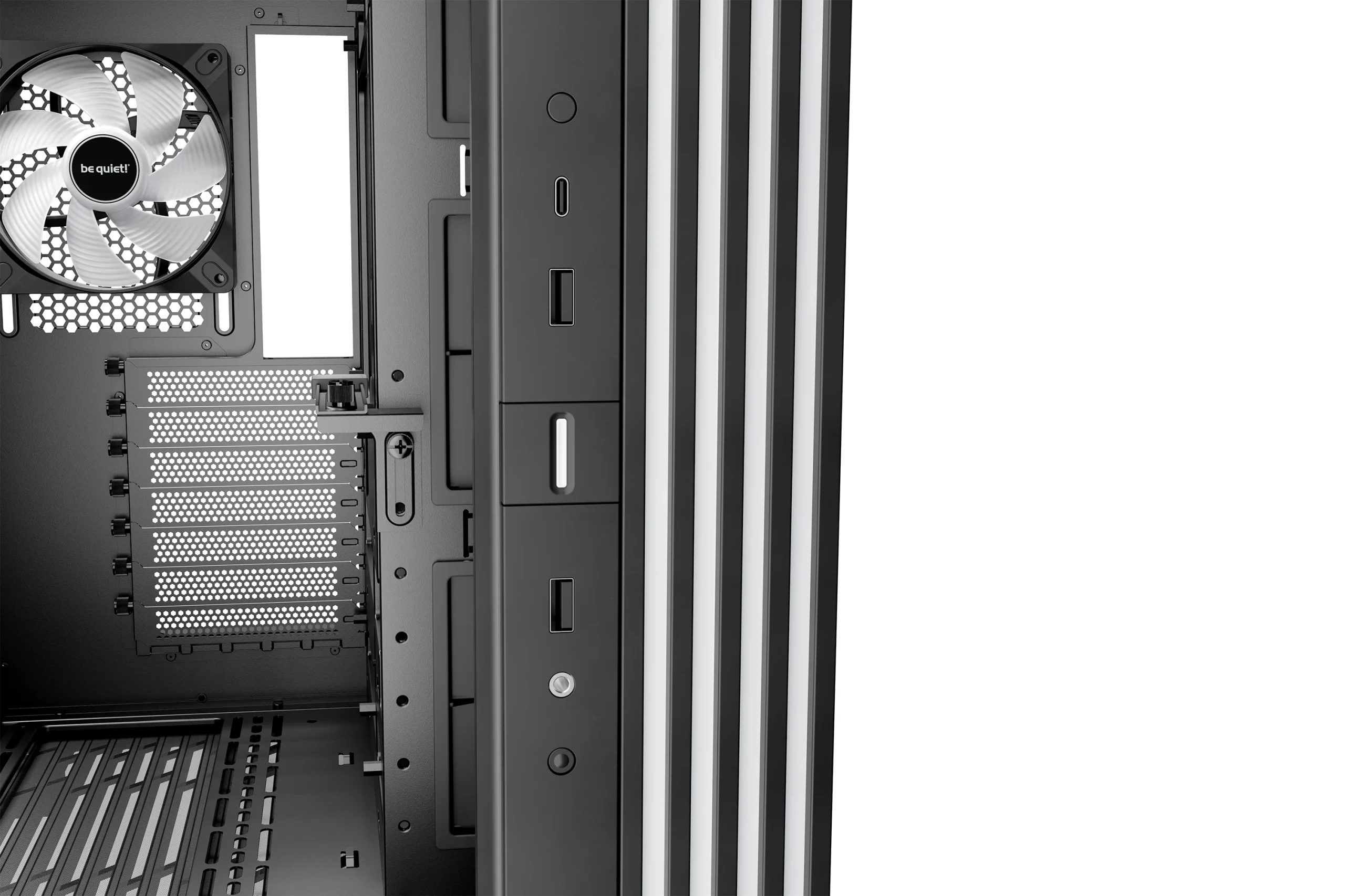 Višepozicioni, stabilni držač grafičke kartice na Light Base 600 DX Black sprječava da kartica savija. A najbolje od svega je što ova podrška radi u svim konfiguracijama, bez obzira da li je grafička kartica instalirana horizontalno ili vertikalno. Rezultat je uredna unutrašnjost, čak i ako koristite veliku i tešku grafičku karticu.