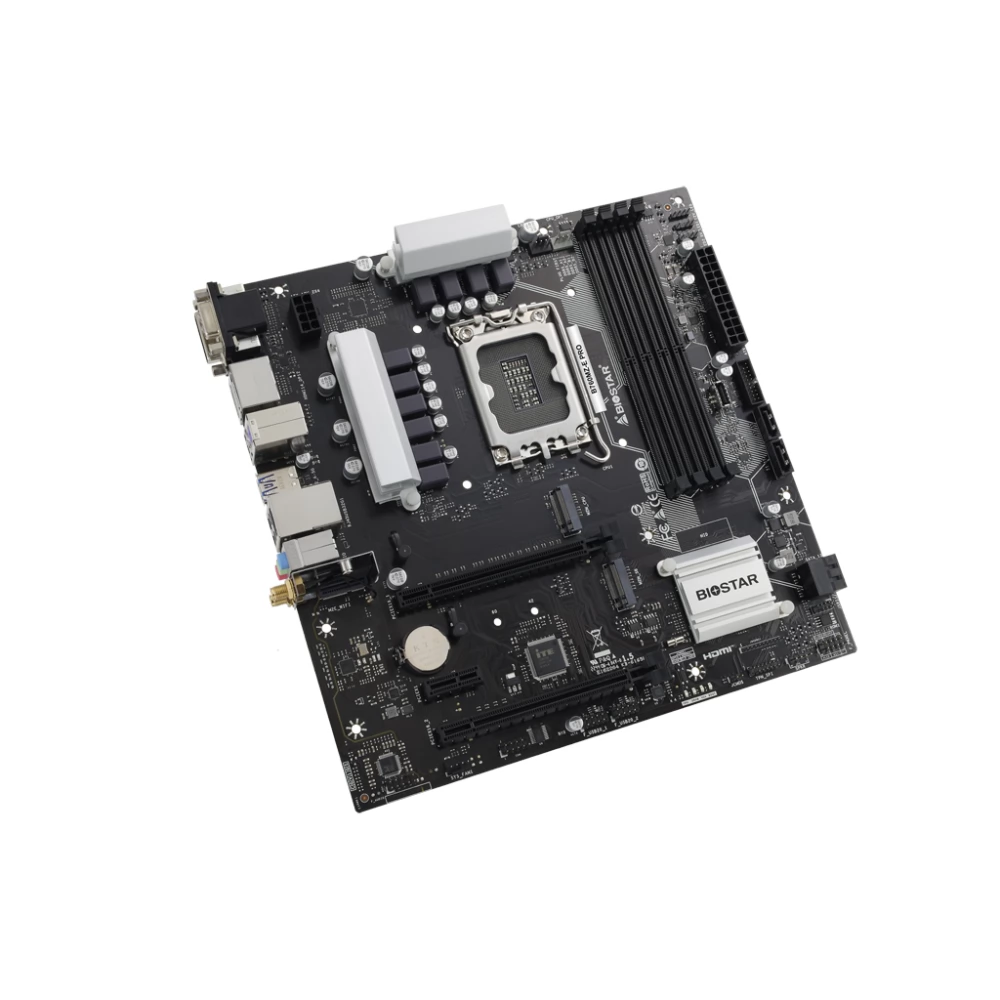 Biostar B760MZ-e Pro ver. 6.0 matična ploča sa LGA-1700 utičnica, Intel B760 čips, integrirana video kartica Procesor, 4 DDR5 memorijski utor (max 192GB). 6 USB 2.0 priključaka, 5 USB 3.0 priključaka, 1 USB 3.1 port.