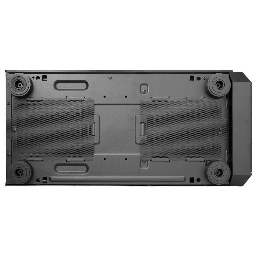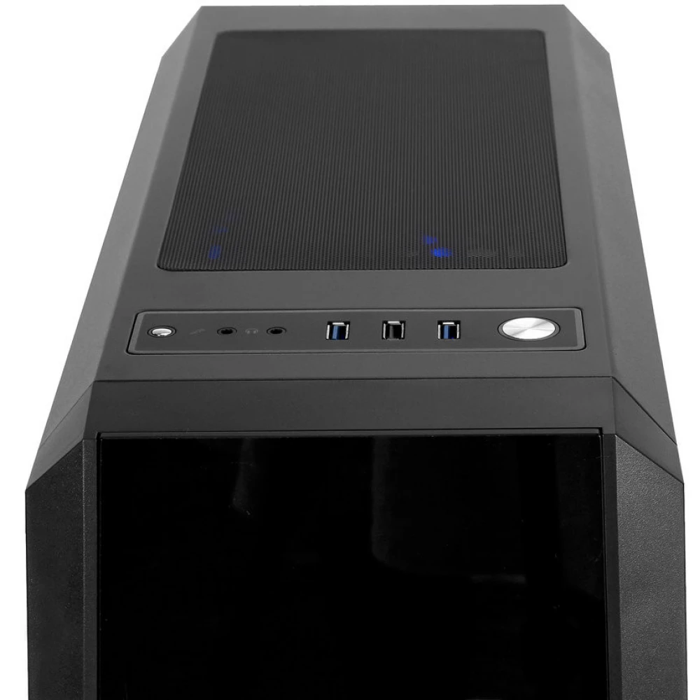 Crno ATX kućište za računar sa vizuelnim elementima.