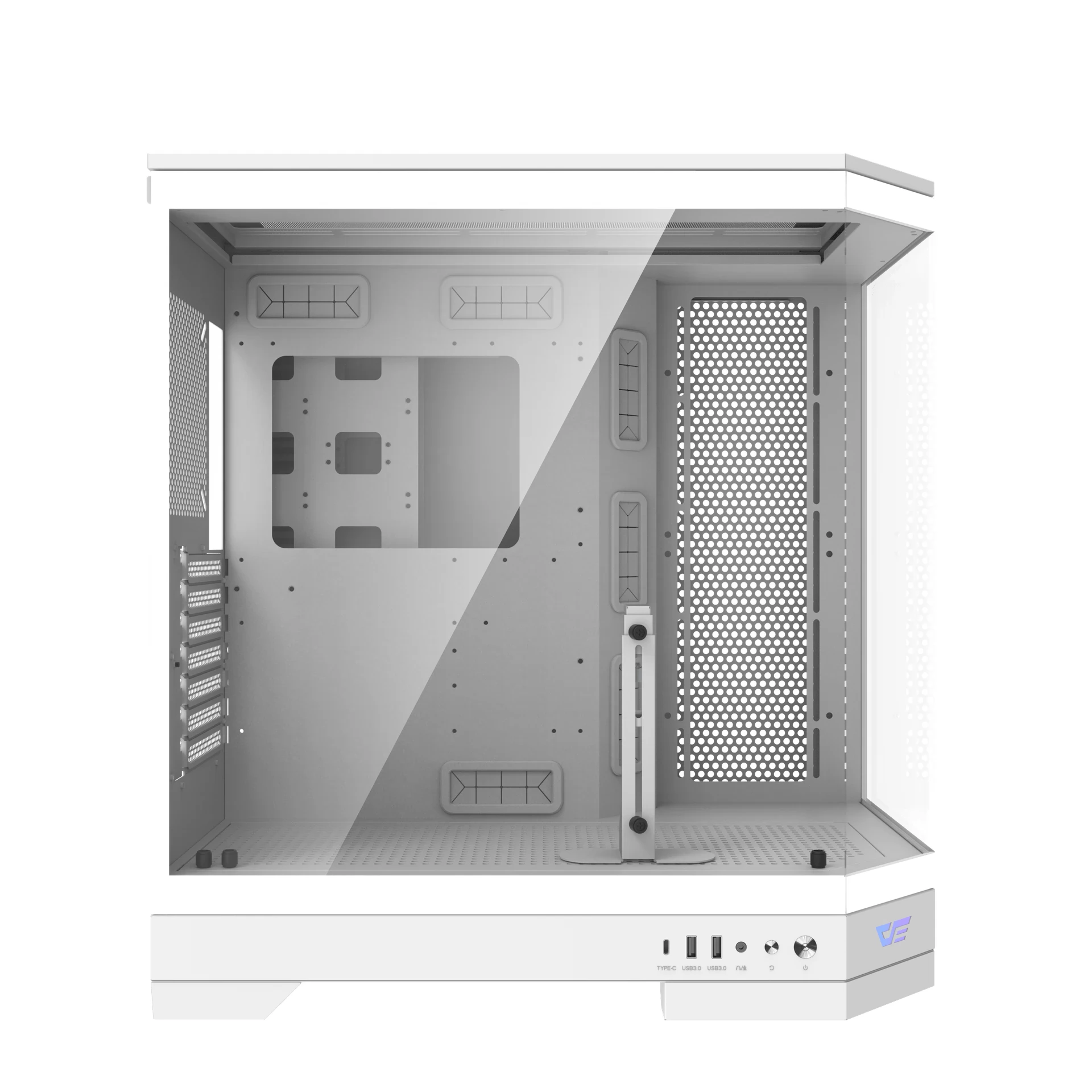 ATX Midi-tower kućište za računar sa panoramskim kaljenim staklenim panelom.