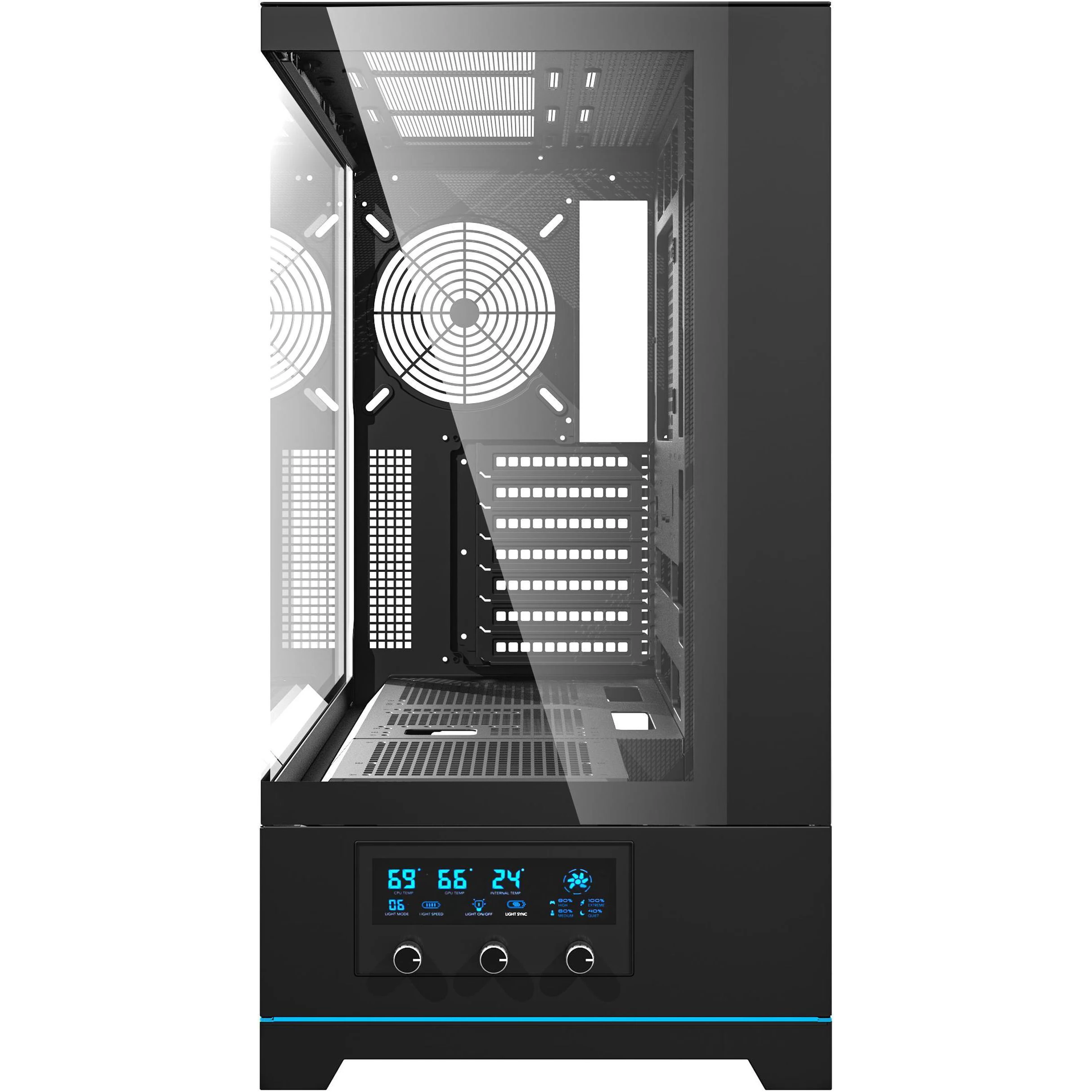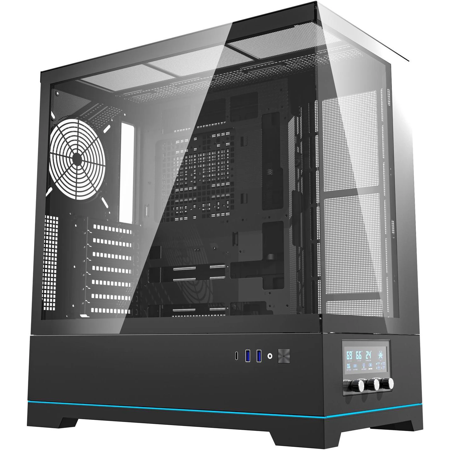 ATX Midi-tower panoramsko kućište za računar sa ARGB vizuelnim elementima.