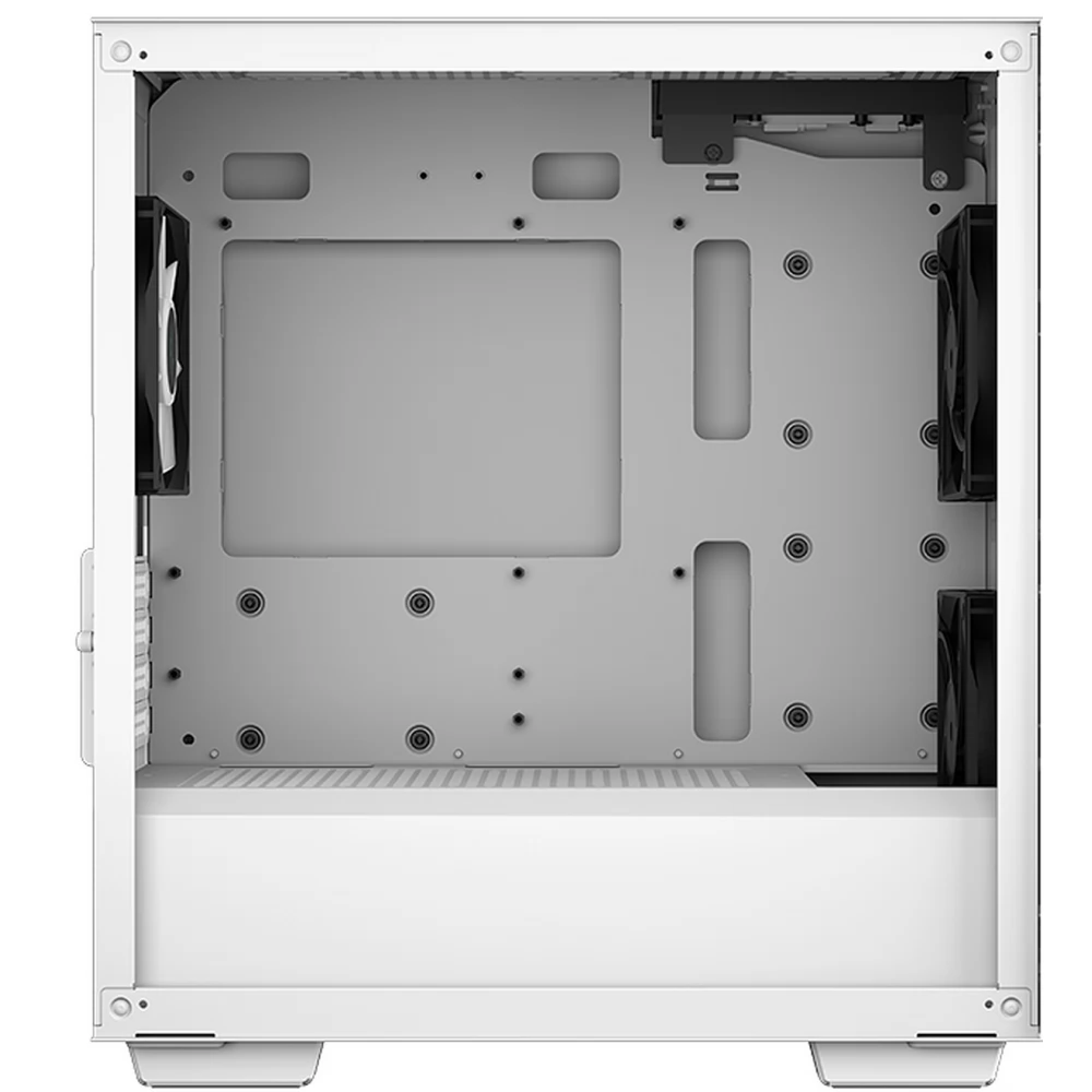 Elegantno bijelo Micro-ATX Mini-Tower kućište sa ugrađenim 3 x 120mm ARGB ventilatorima.