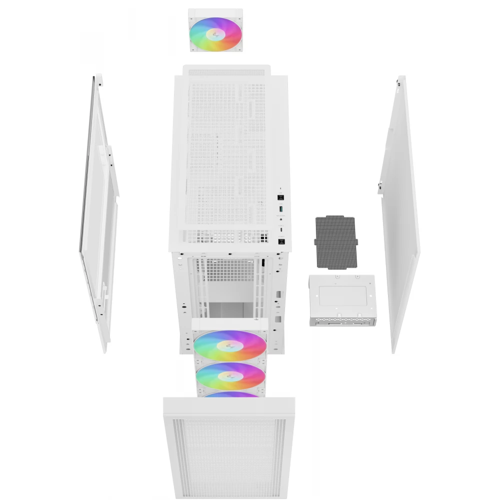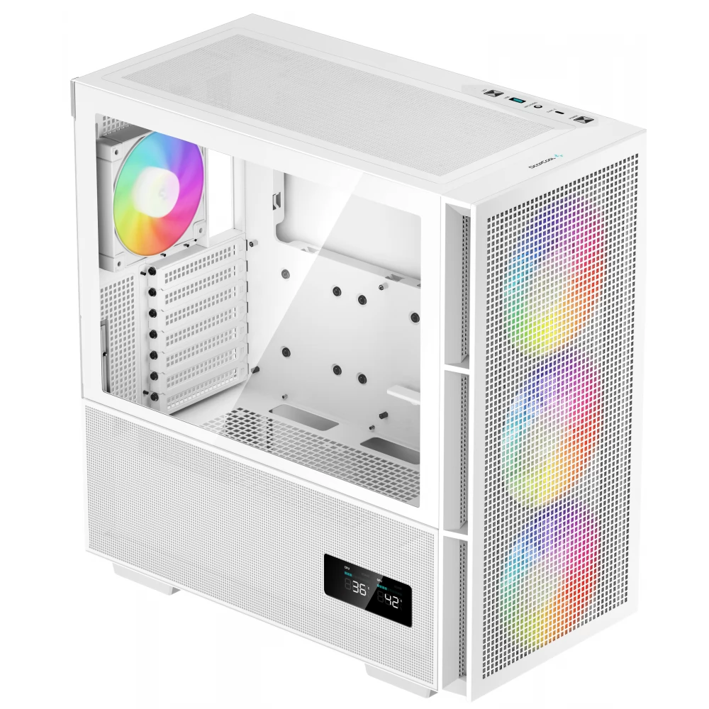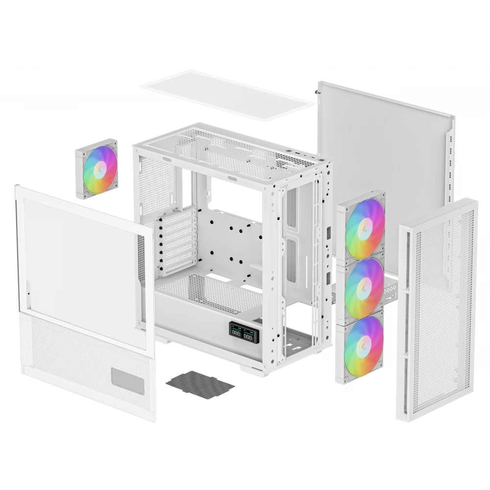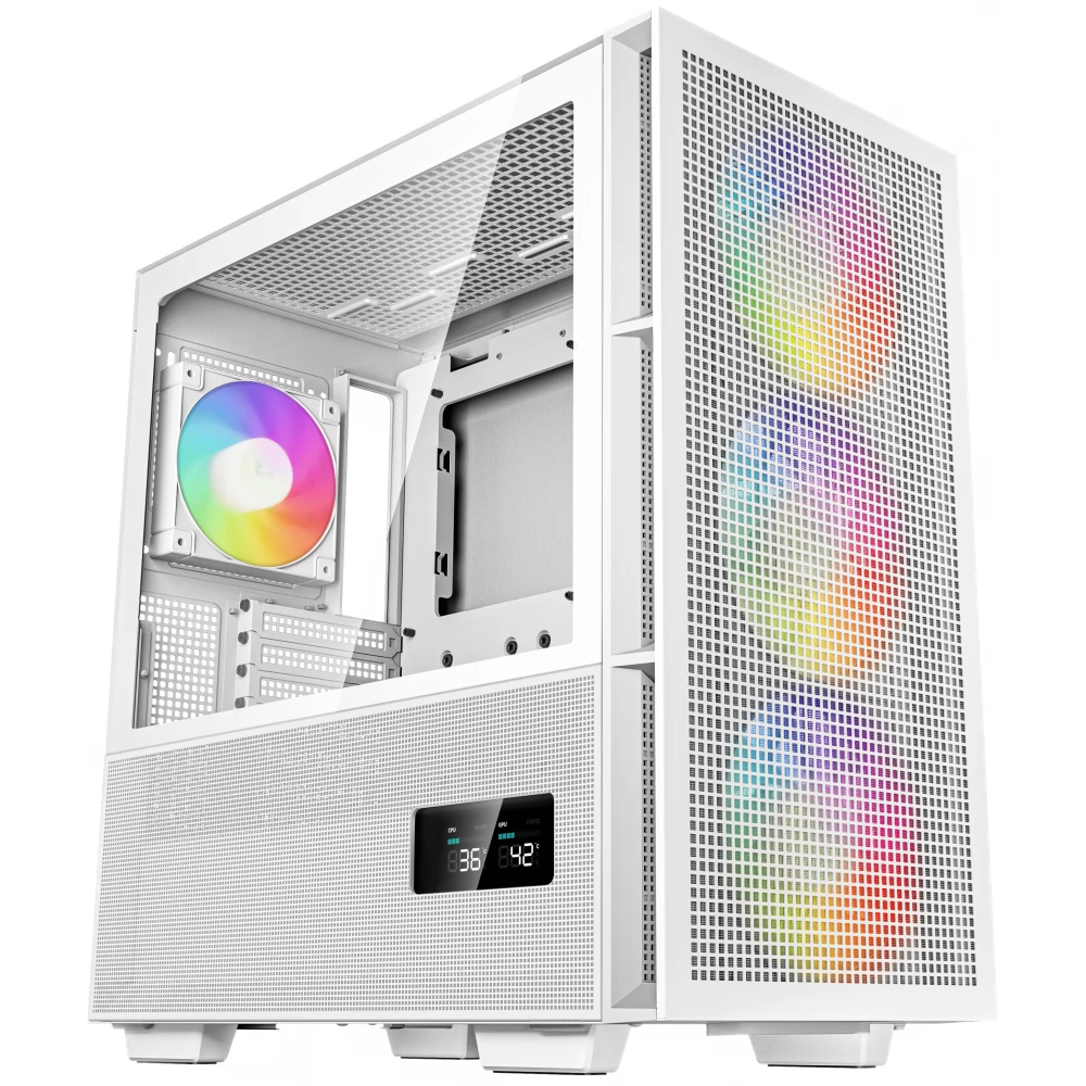 E-ATX tower kućište sa 4 ugrađena ARGB ventilatora i ugrađenim digitalnim displejem.