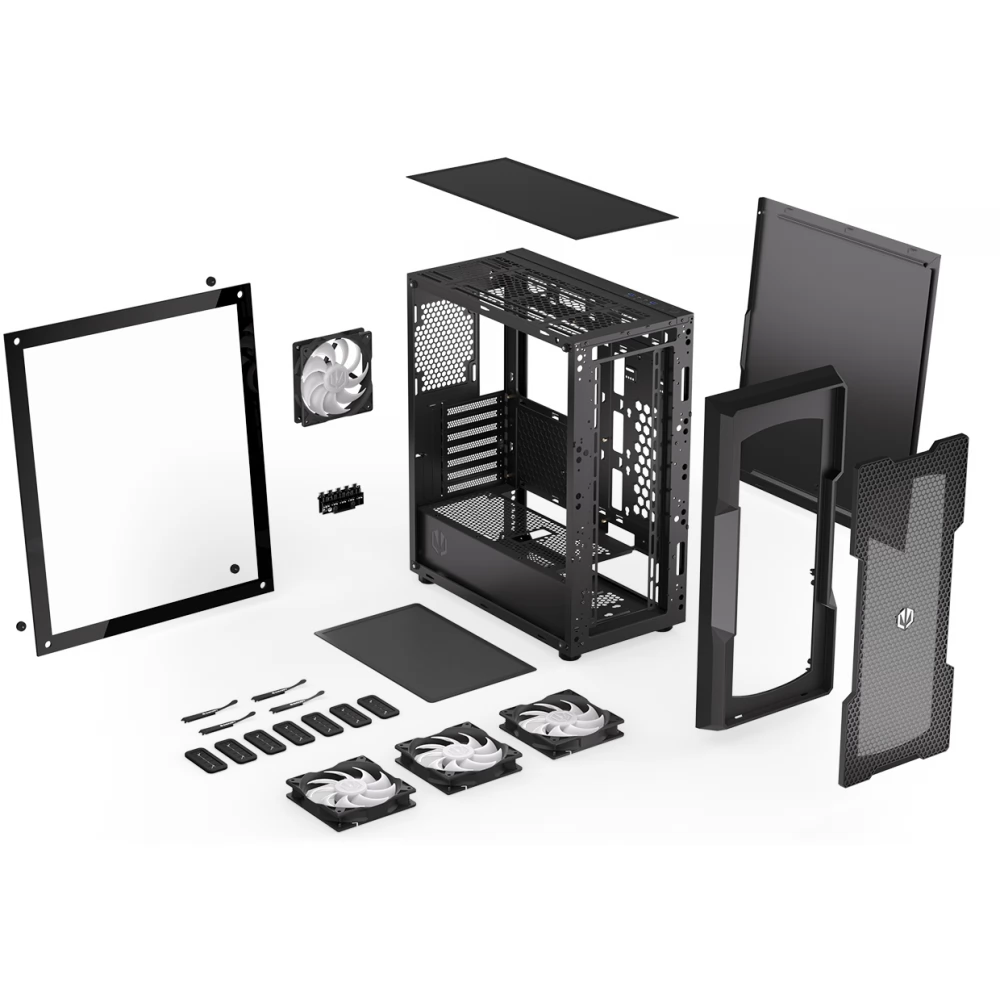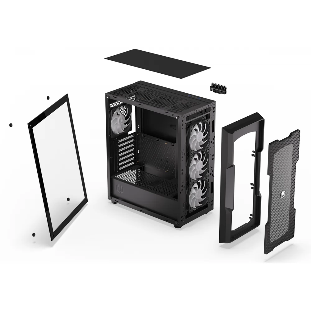 ATX Midi-tower kućište za računar sa 4 ugrađena ARGB ventilatora.