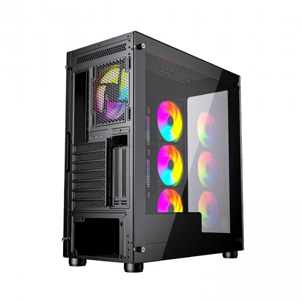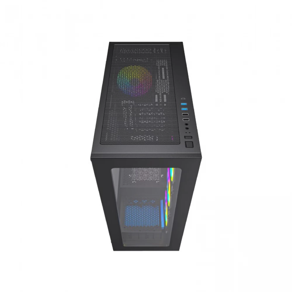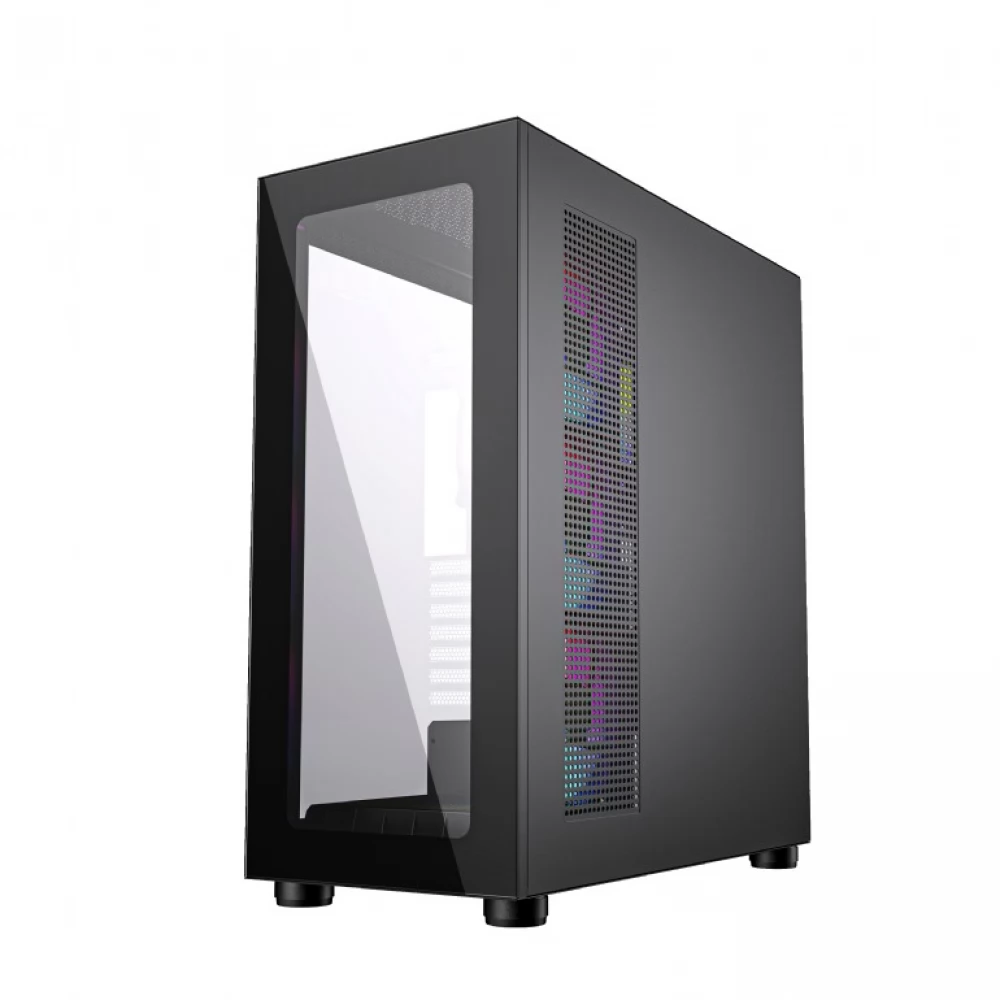 EATX Midi-tower kućište za računar sa prednjim i bočnim panelima od kaljenog stakla i 4 ugrađena 120mm ARGB ventilatora.