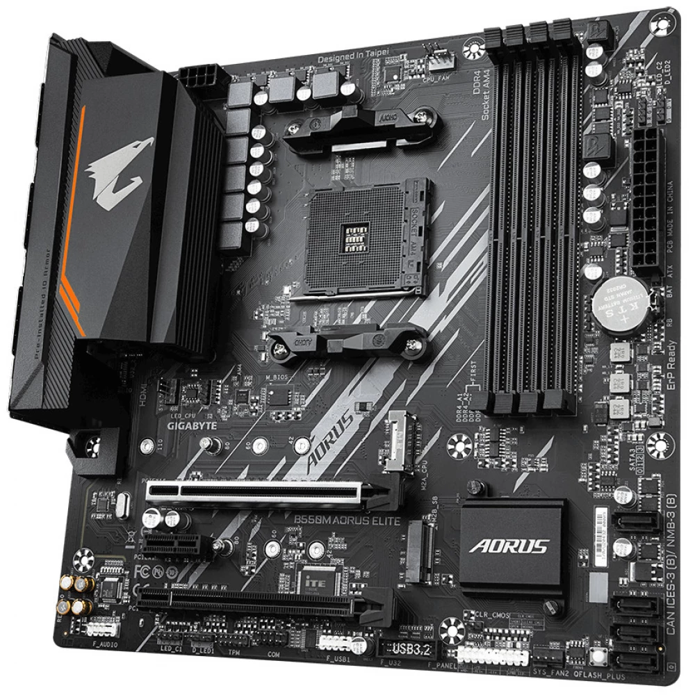 GIGABYTE B550M AORUS ELITE (Rev. 1.0) matična ploča savršen je izbor za najnovije generacije AMD Ryzen procesora. Matična ploča ima spektakularni i moderan dizajn, što nije zanemariv razmatranje računara koji zahtijevaju korisnike.