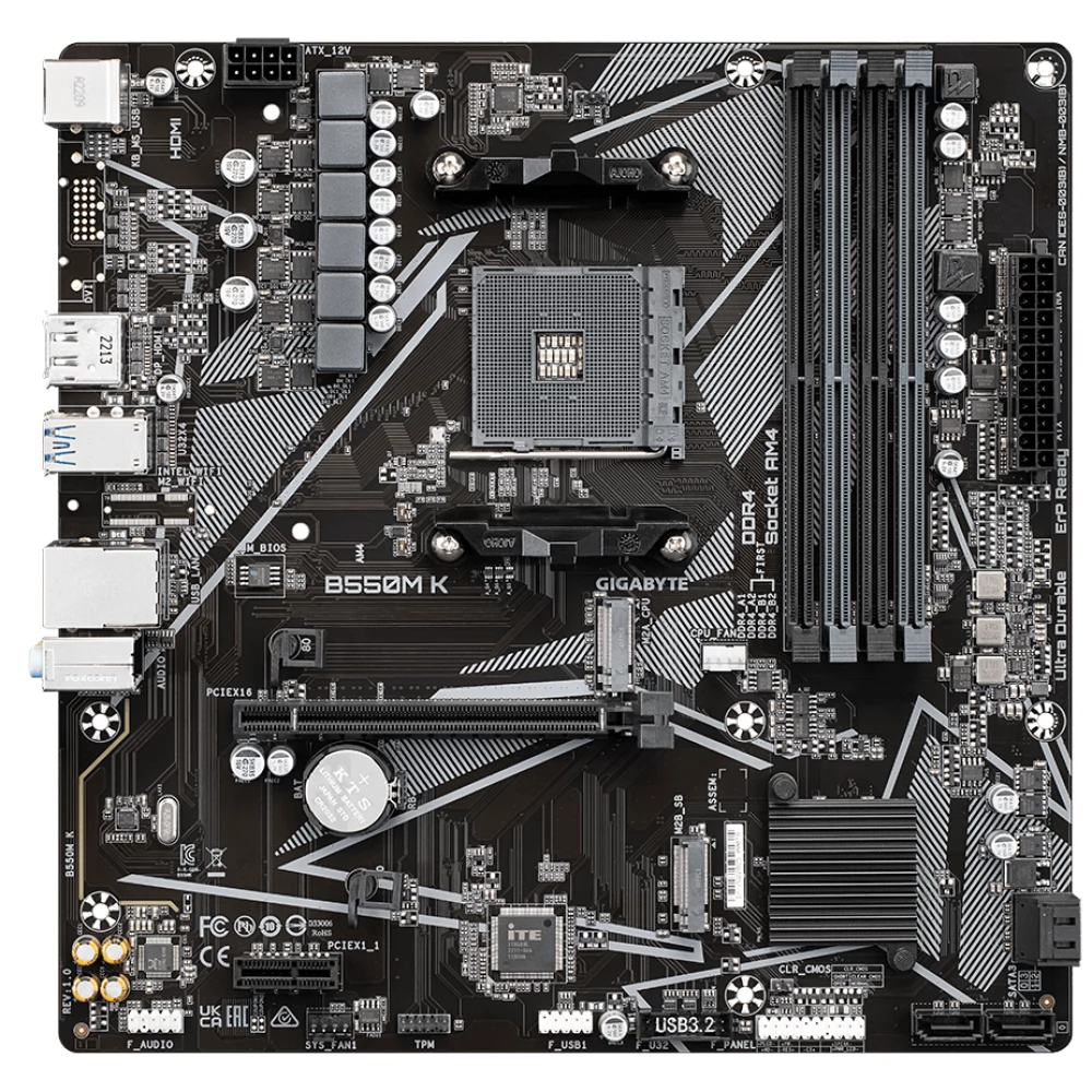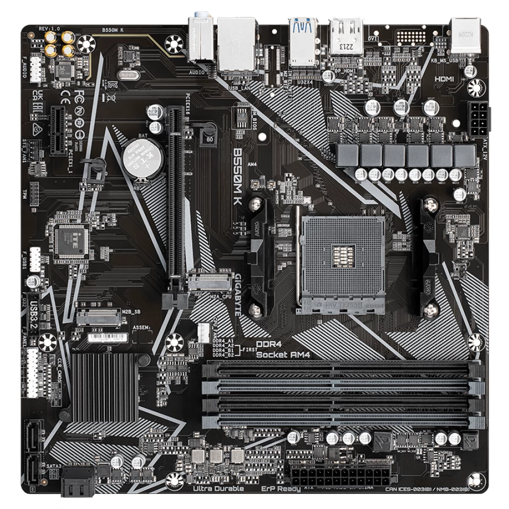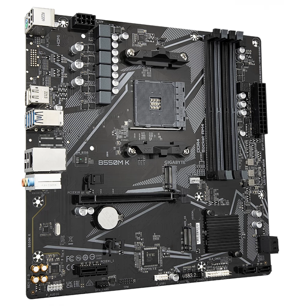 GIGABYTE B550M K (Rev. 1.0) matična ploča je koštana, ali moćna rješenja na AMD platformi dizajniranom posebno za kompatibilnost sa AMD Ryzen procesorima. Čipset AMD B550 pruža stabilnu i pouzdanu operaciju, što omogućava korisnicima da iskoriste AMD-ove nove tehnologije. Matična ploča za Micro ATX može biti savršen izbor za manje, prostora – ugradnju računarskih kuća, idealno za one koji žele napraviti jaku mašinu u kompaktnom veličini.