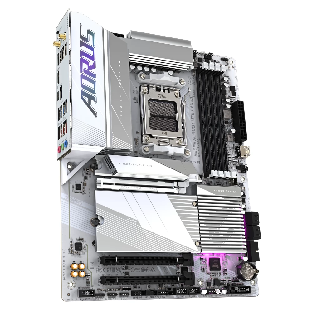 Gigabyte B650E Aorus Elite X AX ICE podržava najnovije AMD Ryzen procesore koji pružaju visoke performanse i brzo vrijeme odziva. Integrirani softver RGB Fusion 2.0 koji korisniku omogućava prilagođavanje i sinkronizaciju matične ploče, čineći ga vizuelnim iskustvom koje oduzima dah.