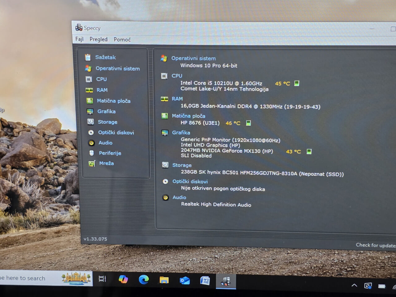 – Integrisana grafika: Intel UHD 4GB + NVIDIA MX130 2GB GDDR5
