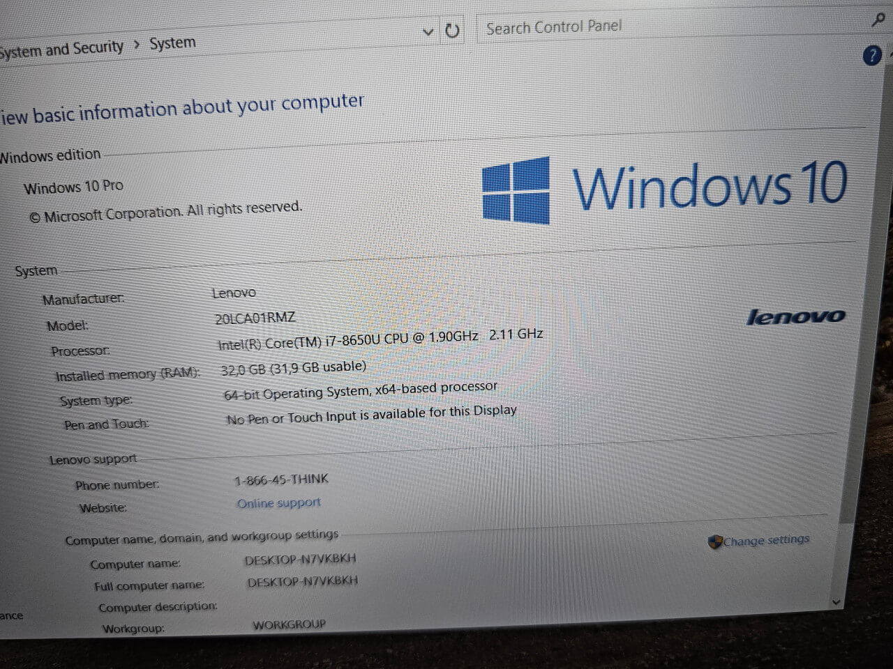 LAPTOP LENOVO ThinkPad P52S Workstation i7-8650U 32GB 512 SSD