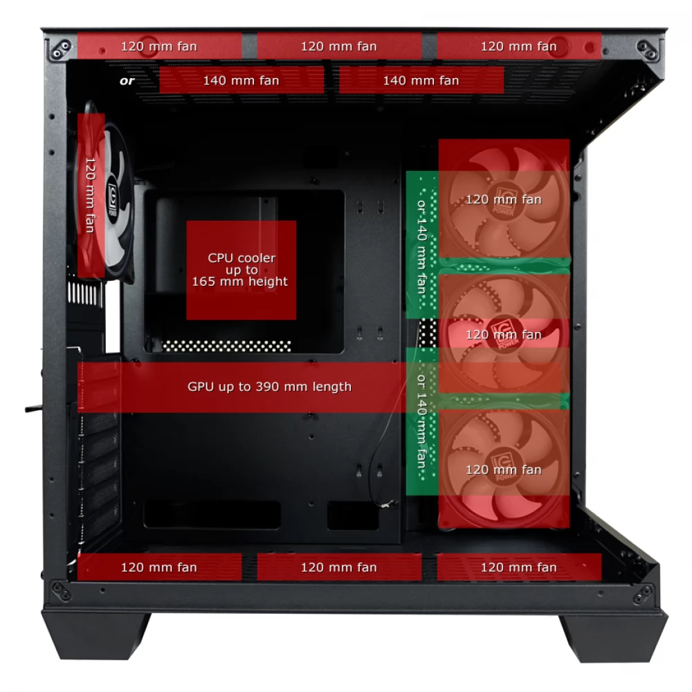 E-ATX Midi Tower kućište za računar sa 4 ugrađena 120mm ARGB ventilatora.