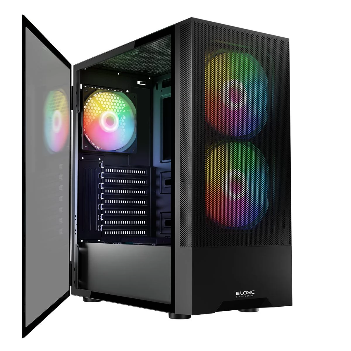 ATX Midi-Tower PC kućište sa bočnim panelom od kaljenog stakla i 3 ugrađena ARGB ventilatora.