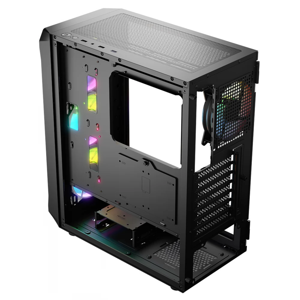 ATX Midi-tower kućište sa bočnim panelom od kaljenog stakla i 4 ugrađena 120mm ARGB ventilatora.