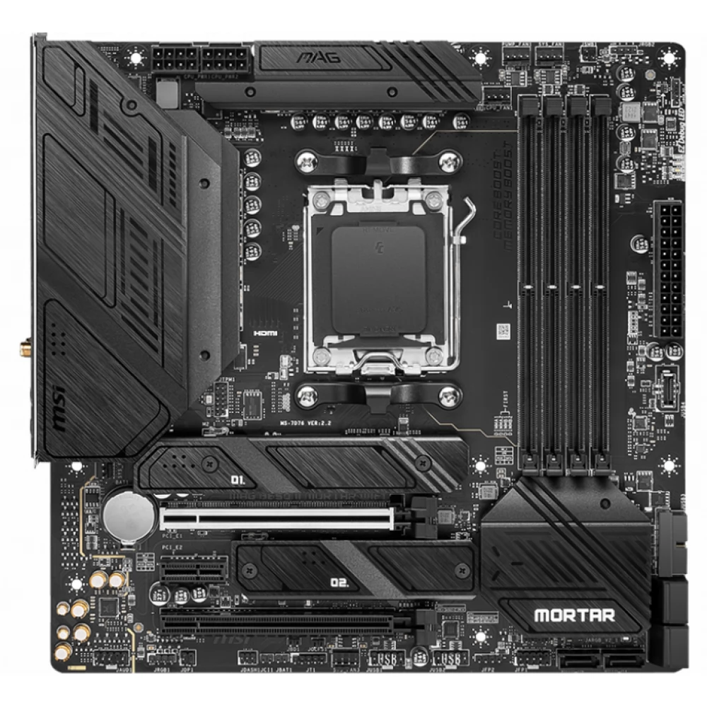 MSI Core B650M malter WiFi matična ploča sa socket-am5 utičnica, AMD B650 čipset, integrirana video kartica procesora, 4 DDR5 memorijskog utora (max 128GB). 4 USB 2.0 portova, 6 USB 3.0 priključaka, 4 USB 3.1 portova.