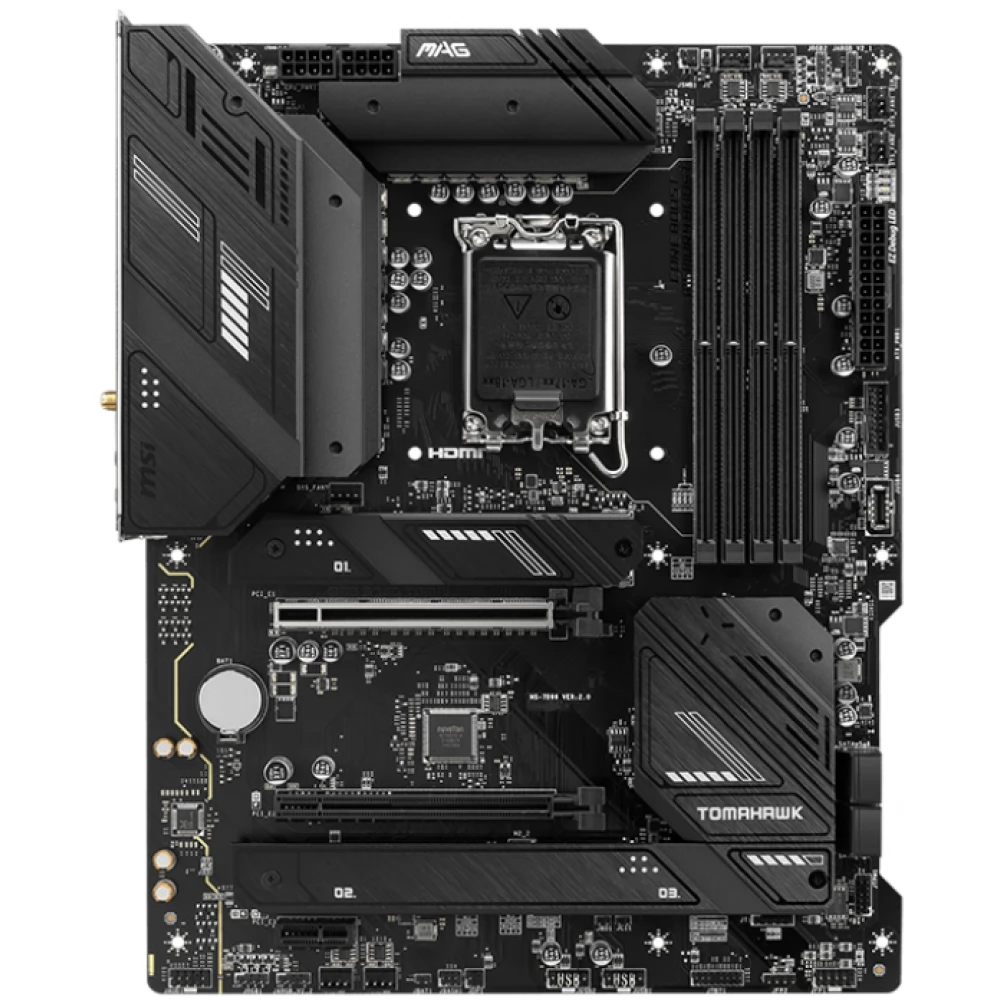 MSI Core B760 Tomahawk WiFi matična ploča sa LGA-1700 utičnicom, Intel B760 čipset, integrirana video kartica procesora, 4 DDR5 / Cudimm memorijske sekcije (max 256GB). 8 USB 2.0 priključaka, 2 USB 3.0 priključka, 5 USB 3.1 portova.