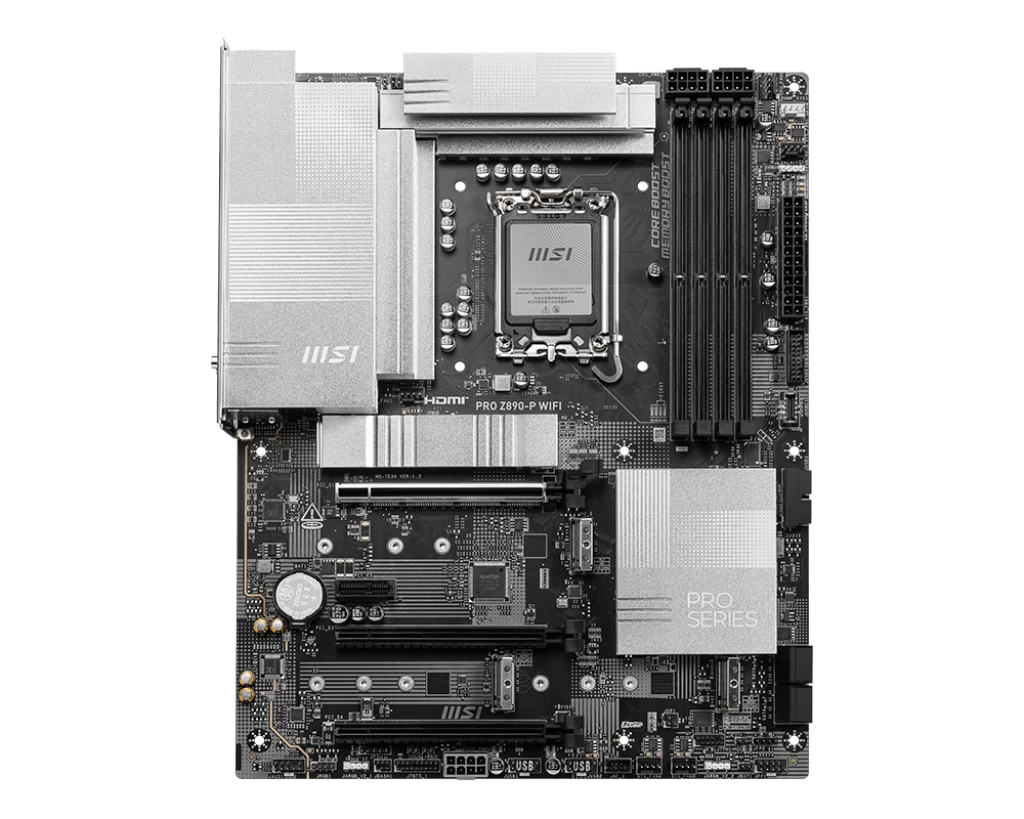 MSI PRO Z890-P WiFi matična ploča sa LGA-1851 utičnicom, Intel Z890 čipset, integrirana video kartica procesora, 4 DDR5 memorijskog utora (max 256GB). 8 USB 2.0 priključaka, 8 USB 3.0 priključaka, 1 USB 3.1 port.