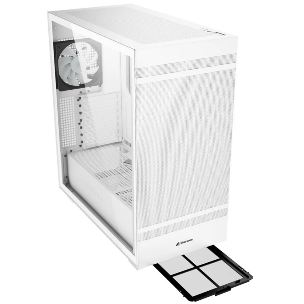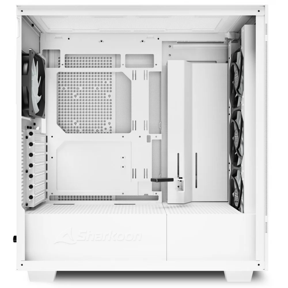 ATX Midi-Tower PC kućište. Elegantno dizajnirano, s modularnim opcijama instalacije i potpuno dizajnirano za performanse: ovo je Sharkoon Rebel C50! Sa prozračnim kućištem i perforiranim unutrašnjim površinama, ovo ATX kućište je dizajnirano za protok zraka. Modularne opcije instalacije pružaju prostor za do dva 360 mm radijatora ili jedanaest 120 mm ventilatora, a čak se i HDD i SSD diskovi mogu modularno montirati na nosač za montažu. USB-C i TRRS portovi na gornjoj ploči osiguravaju buduću povezanost.
