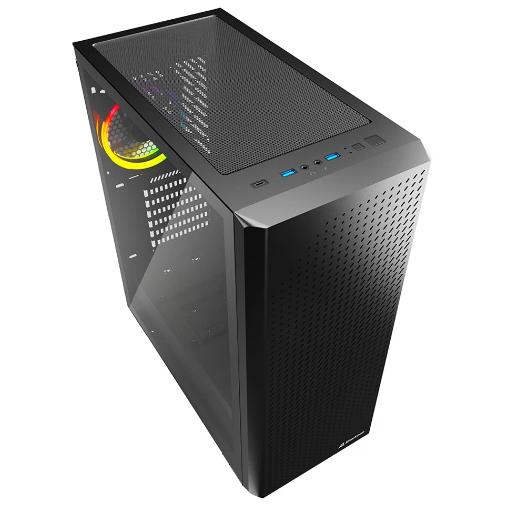 ATX Midi-tower kućište s 1 ugrađenim RGB ventilatorom pozadi.