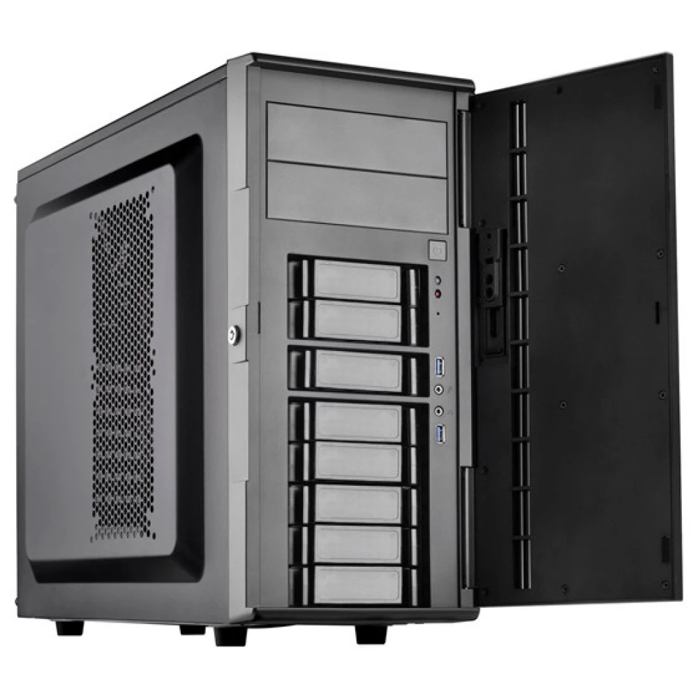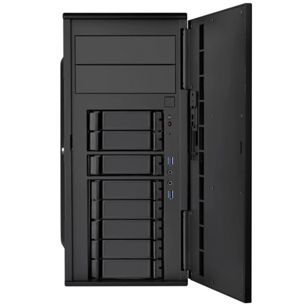 Uključuje 2 ležišta za diskove od 5,25″ i 8 ležišta za SATA/SAS 3,5/2,5″ diskove.