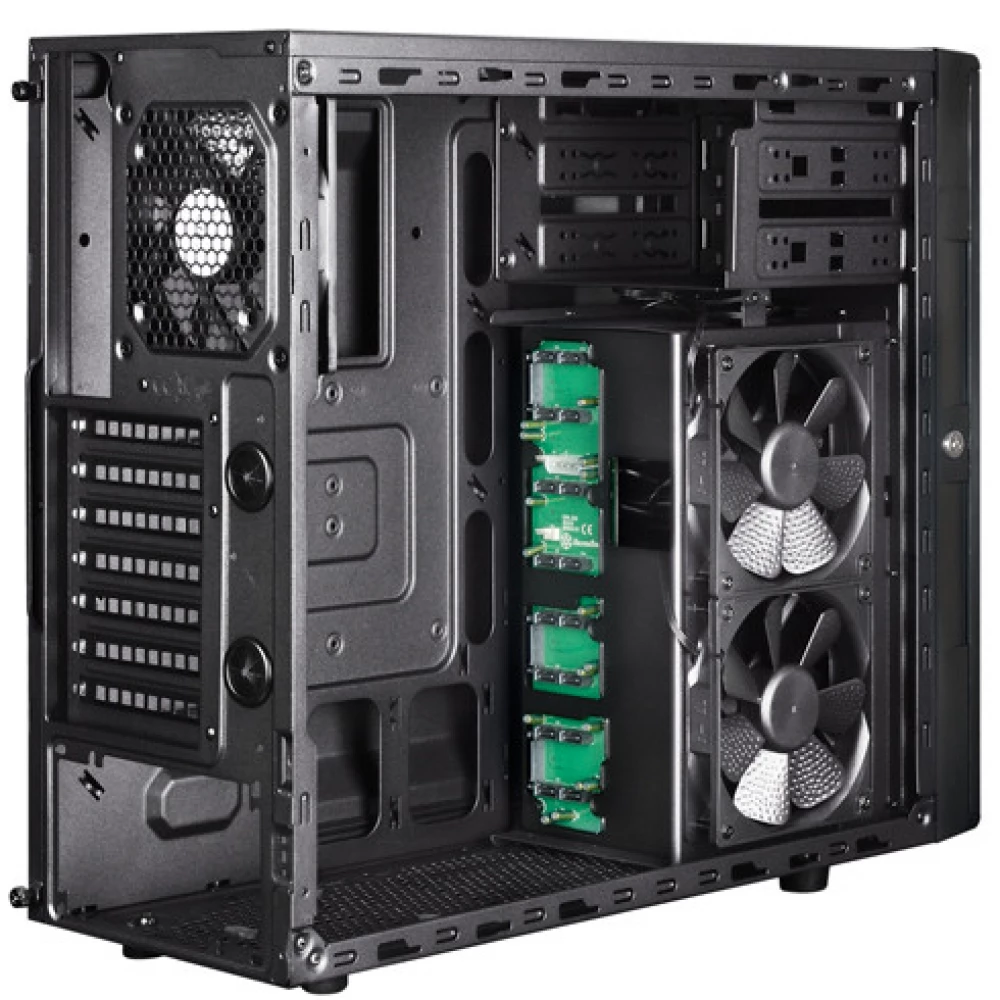 Uključuje 1 ventilator od 120 mm na stražnjoj strani i 2 ventilatora od 120 mm sa strane.
