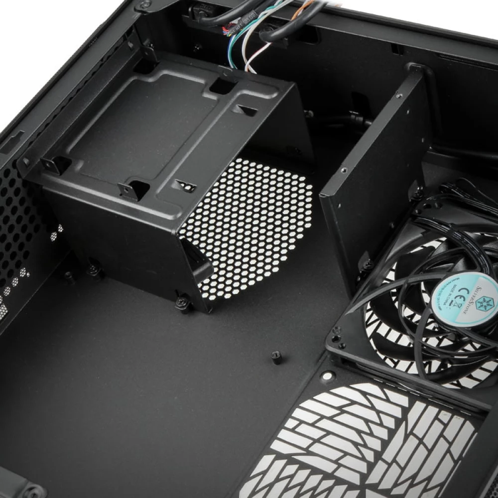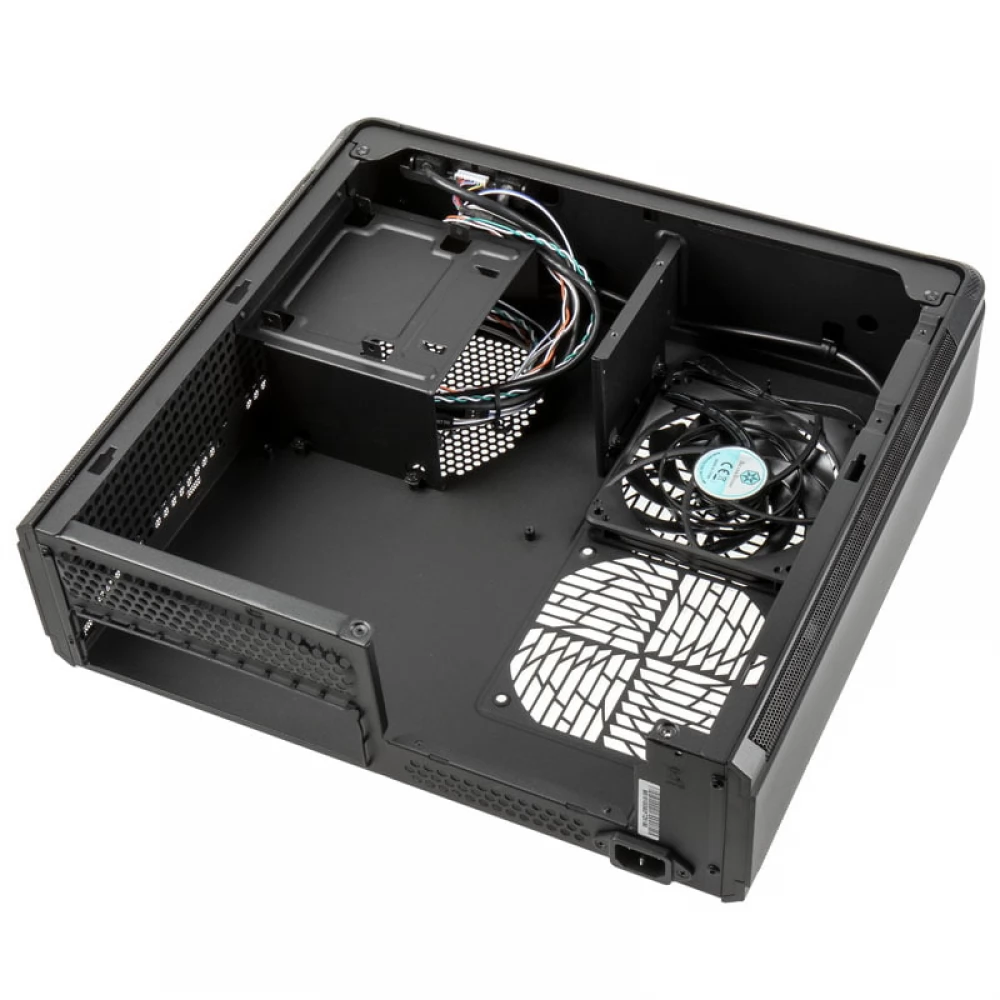 Crno malo aluminijsko kućište za računar sa mini ITX matičnom pločom i SFX podrškom za napajanje.