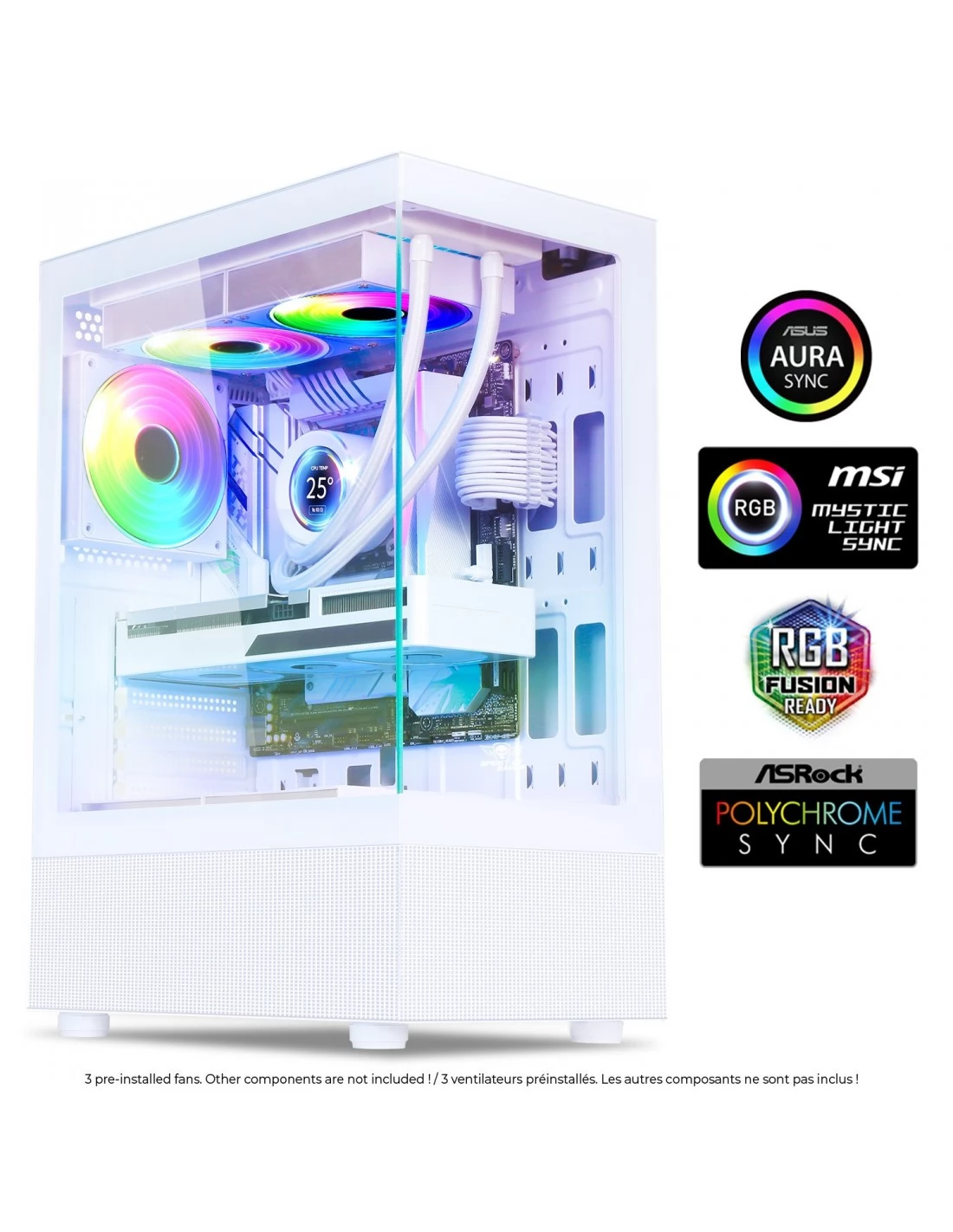 ATX Midi-tower kućište za računar sa 3 ugrađena RGB ventilatora.