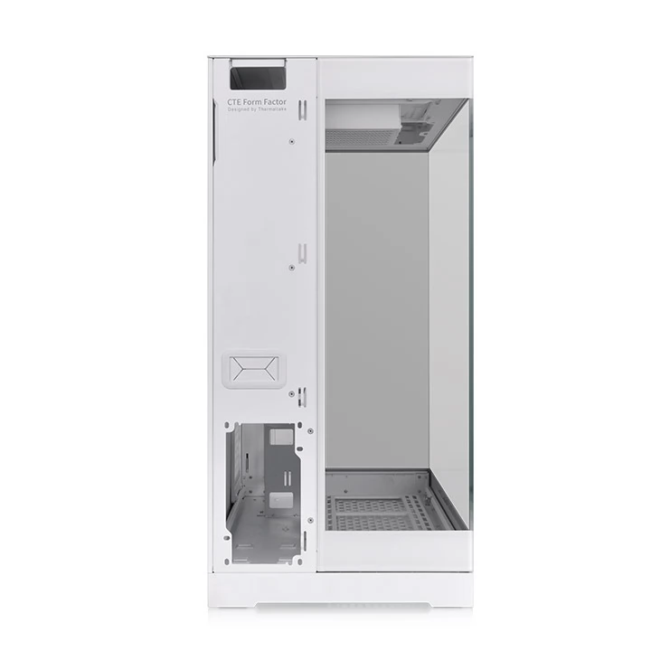 E-ATX Midi-tower kućište za računar sa 3 strane i panoramskim pogledom koje podržava matične ploče montirane pozadi.